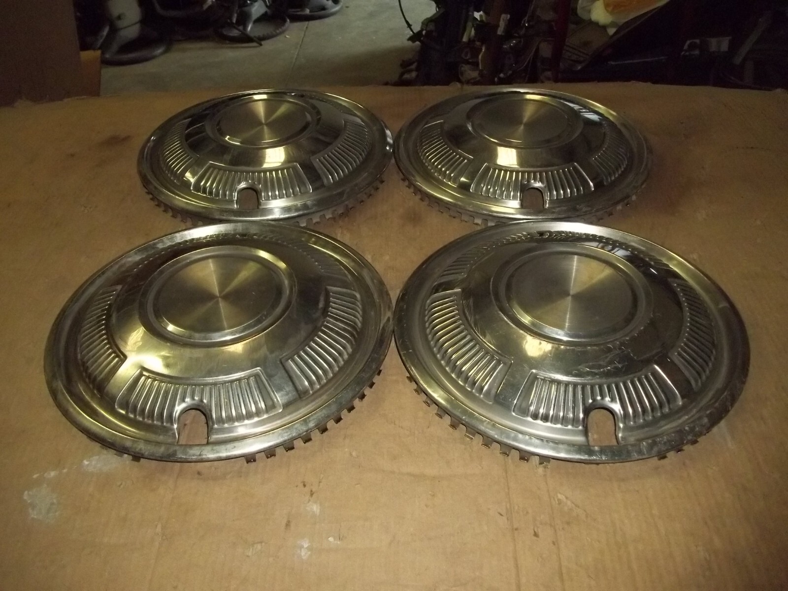 A set of FOUR (4) 76-78 Mazda RX4 13" factory full wheel covers.Match pictures for correct replacement.This is a VERY used set with MANY deep scratches / scrapes and large dings / dents.These scratches / scrapes and dings / dents will be noticeable from even a short distance.Outer most sections curb scraped.The original finish is VERY faded and worn due to time.Oxidation and corrosion.Staining that does not polish out.Paint worn and peeling off.Slightly bent out of round when laid flat but attach to wheels as designed.Mounting teeth bent out of line and uneven but attach secure.Covers are slightly different heights or depths.Poor driver car quality.On a scale from 1 to 10, these rate a "5" in condition.Buyer to pay shipping with a flat rate of $20 within the continental U.S..Elsewhere there are additional charges.Accept most methods of payment.California buyer to pay state sales tax.