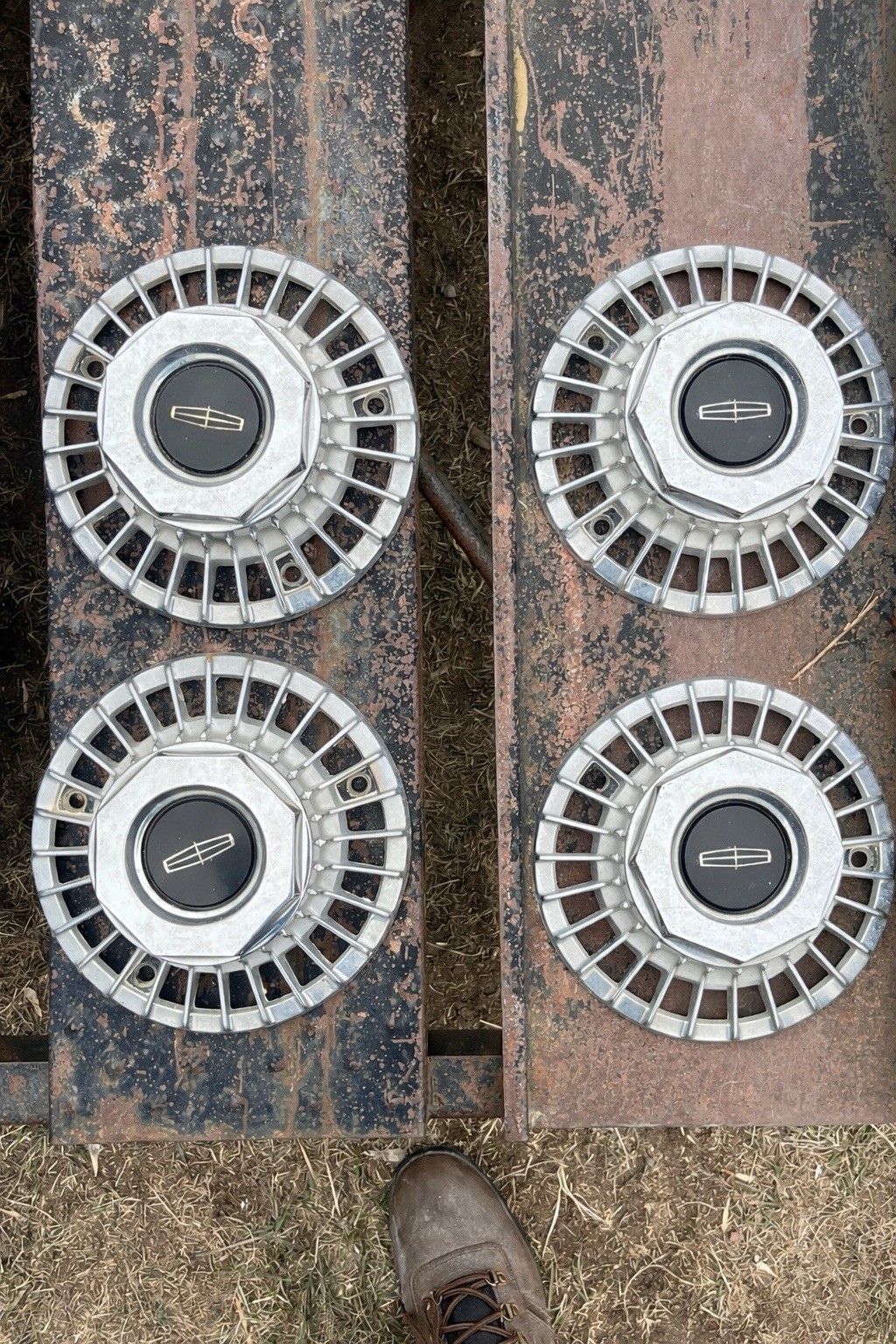 1976 Lincoln Continental Hubcaps (4) – Factory OEM – One Needs Screws
