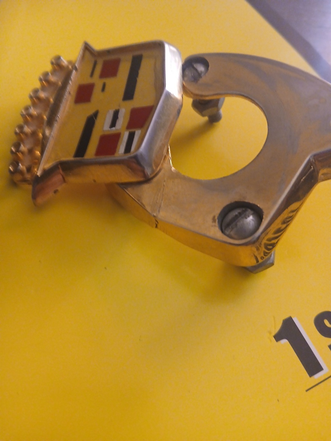 1977-1996 Cadillac Trunk Lock Crest Emblem Slider Badge Assembly GM 20182846 > **Item:** 2 Vintage Cadillac Trunk Lock "Flip" Emblem / Keyhole Covers - 1 for parts. > > **Description:** > > These are original Cadillac trunk lock emblems, designed to swivel/flip to reveal the trunk key cylinder. They features the iconic Cadillac crest and crown with traditional multi-color detailing. This style was widely used on Cadillac models from the **1960s through the early 1990s**, including the **DeVille, Eldorado, and Fleetwood**. > > **Details:** > > - **Finish:** Gold-tone/Chrome plating. > > **Function:** Features the "flipper" mechanism used to protect the trunk "Good vintage condition with minor pitting" and fading of gold plate on mail unit as shown in pictures. > > The spring is tight and functional on the complete main unit. Please see photos for exact cosmetic condition. > > Note: I DO NOT HAVE THE KEY FOR THE LOCK. Show a key will need to be made for the lock thats in it. > > **Mounting:** The complete one with the metal tang Includes the rear mounting post (clip), for installation, the other one is for parts and is just the housing, emblem and spring... the spring is a bit weak and the housing has a crack on it as shown in pictures but you could use the face emblem and perhaps replace it onto the complete one? Who knows, but I threw it in there for parts for you either way. > > Perfect for a classic car restoration or as a piece of automobilia for a collector! Please look carefully at all the pictures. Ask all the questions you want before you purchase. I don't want there to be regrets or refunds. Thank you.