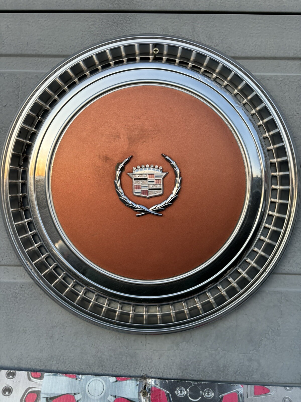 **1977-1978 Cadillac Eldorado FWD Yellow color insert, one Oem hubcap!** **One used Wheel Cover/ 15” Hubcap Condition is "Used".** **Has no real flaws in Brown color insert with minor scratches in face, and minor curb scratches.** **Will fit 1970,s FWD** **This is one of the best looking stainless full wheelcovers ever made...** **This will fit original steel 15” wheel Fwd !** **This was stored in a garage of one of my older customers, since 1995..** **Heavy duty clips will mount well...** **Not many examples of these in this condition, some minor dents and scratches, see pics!** **No clips missing.** **No rust on face of caps..** **Brown Color Insert on centers.**
