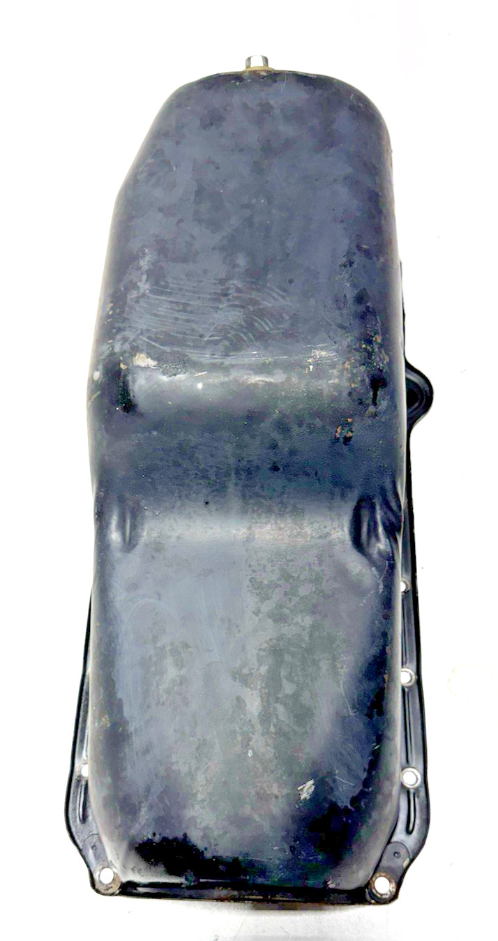 - Chevy Corvette Engine Oil Pan & Drain Plug - 1984-1985 C4 Corvette - 1980-1982 C3 Corvette - 5.7L V8 - Right Passenger Side Dip Stick Access - OEM Part 14082350 - Good preowned condition with scrapes and dings on the underside