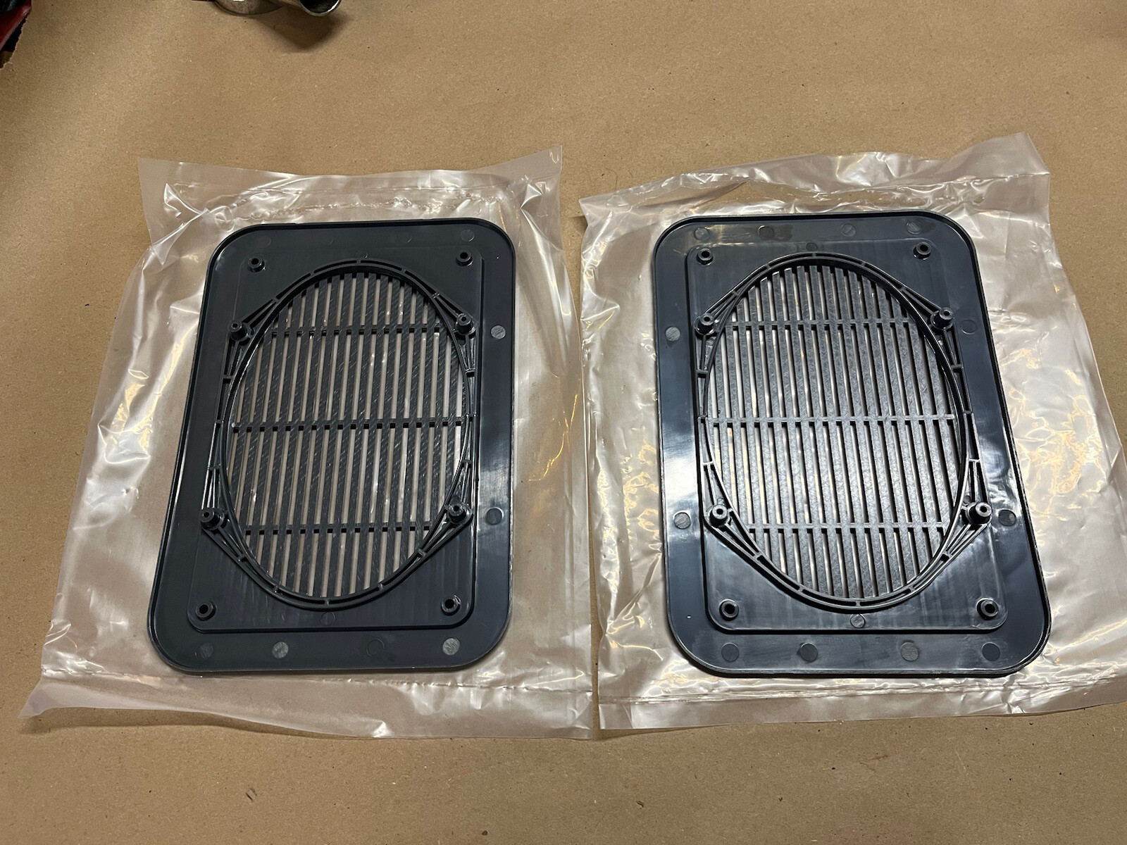 1980-1991 Ford Bronco rear Speaker grills dark gray. Brand new condition with no breaks. The shipping cost quoted on the listing is for continental US shipments only.