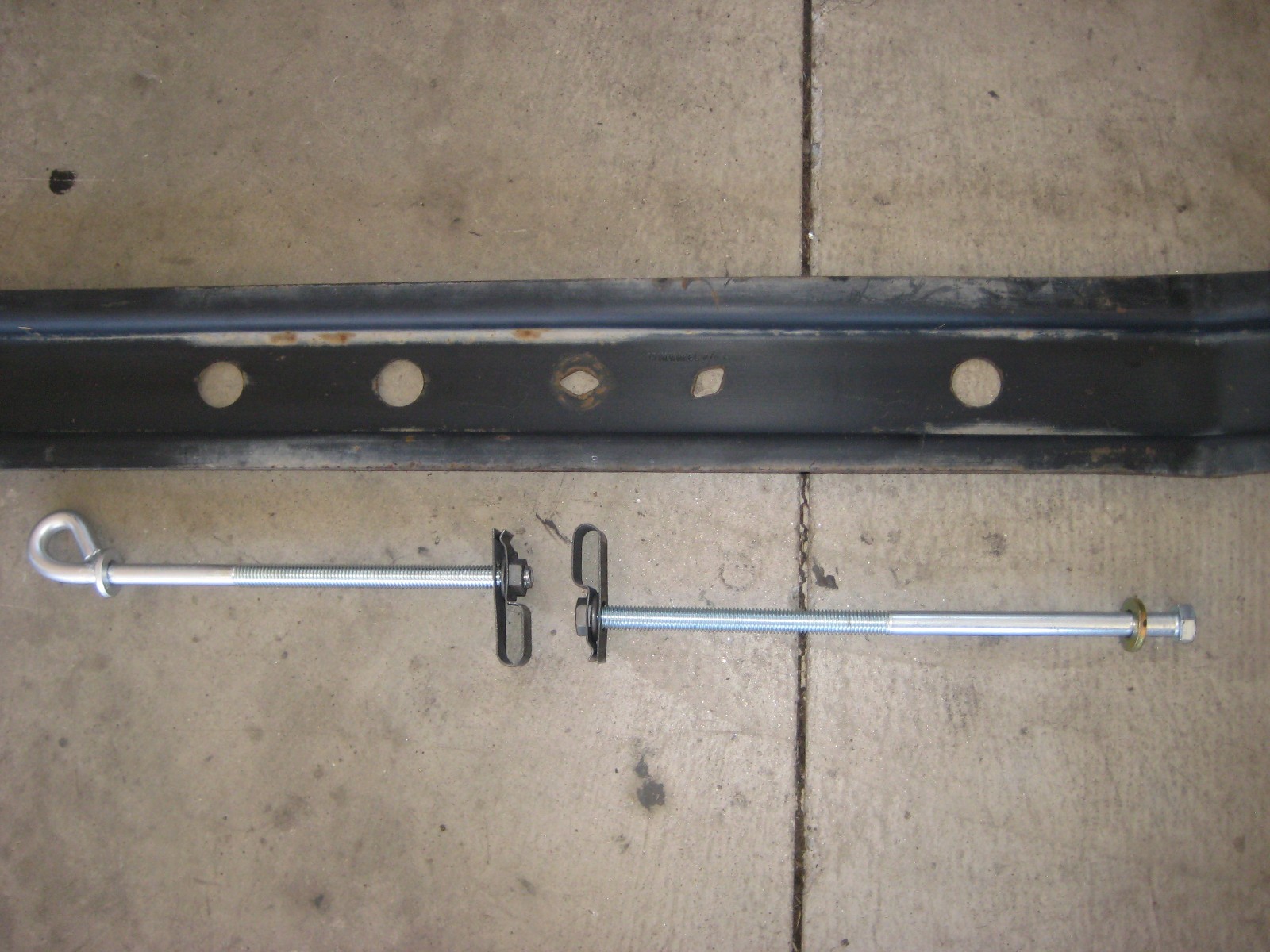 **\*\*Note : Carrier Section is Factory** **Original** **with NEW BOLTS and CLIPS .** **Carrier is 48 3/4 " long and the hole center to hole center is** **approx****43"****.** **There is three carriers for these trucks !!!! Anti seize should be applied to the bolt threads to prevent rust. Please measure your truck** **prior to buying, as I have a NO RETURN policy !! THIS IS THE LONGEST CARRIER AND MOST COMMON.** **I DO NOT PAINT MY CARRIERS THEY ARE FACTORY ORIGINAL AND RAW SO YOU KNOW WHAT YOUR BUYING.** **Removed from a 1993 F250, Fits 15"and 16"rims. Fits F100, F150, F250 and F350. 1980 1981 1982 1983 1984 1985 1986 1987 1988 1989 1990 1991 1992 1993 1994 1995 1996 1997.** **I DO NOT use stock pictures ! the part pictured in this add is the part you will receive !** **\\*\\*\\*\*\*** **If you are not sure about fit please measure you truck hole pattern** **Center to Center and email that info to me and I will reply to insure** **you are purchasing the right carrier for your truck** **This** **item is sold in an as is condition. Please READ the whole description** **and examine all photos and know what you are buying before you place** **your order .... If you are unclear about ANYTHING, please email me with** **your questions before you purchase.**