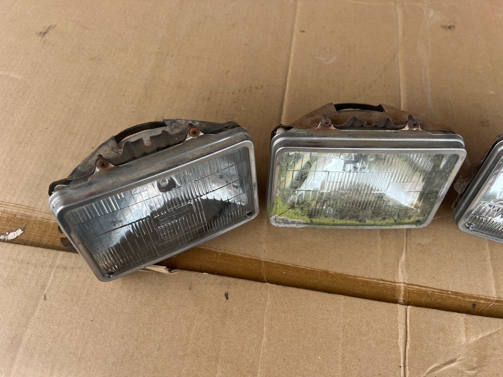 nice set of solid buckets with good rings. rings will need good cleaning to polish up shiny or use as is, one light has some peat moss on it nice set of solid buckets, all have bulbs, never saw bulbs work. untested nice solid usable set, you are getting what is pictured ask any questions as i do not take returns free shipping