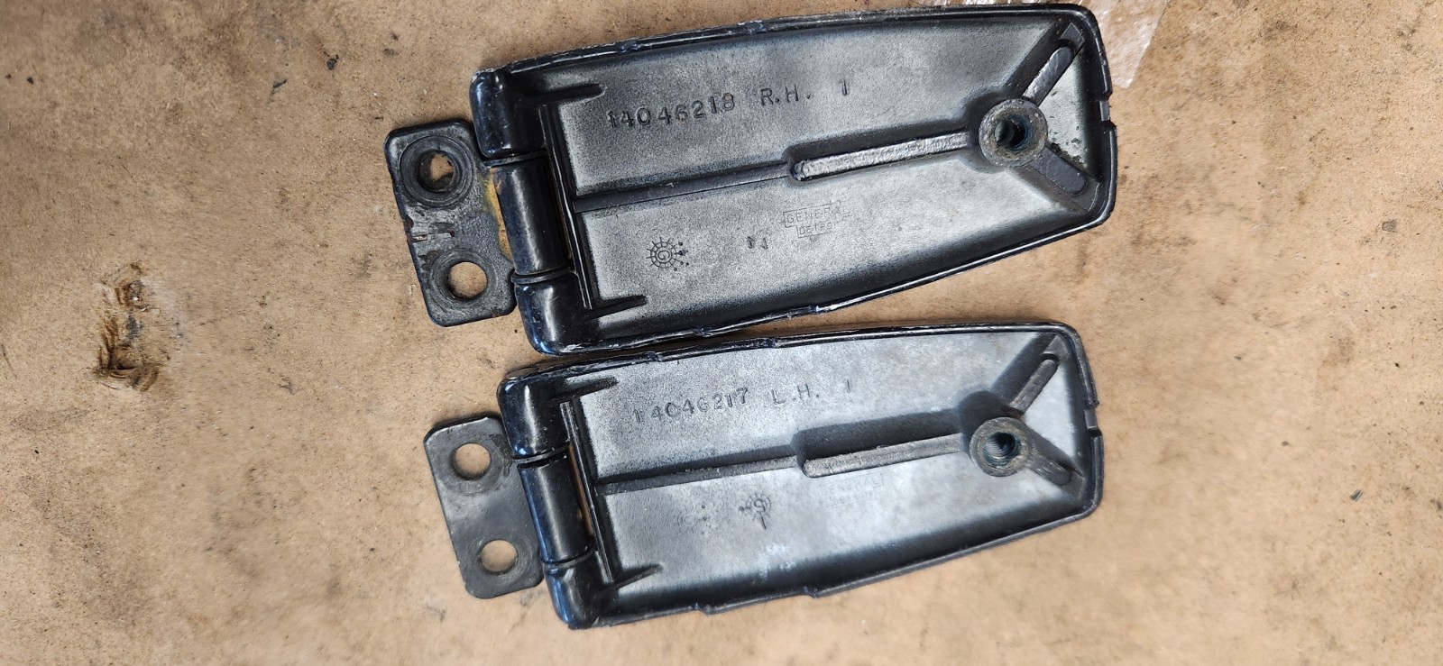 The product is a set of genuine GM rear window glass hinges for a 1982-1992 Chevy S10 Blazer or GMC Jimmy. These vintage parts are made in the United States and are designed for rear placement on the vehicle. The OE/OEM part number is 15653570, ensuring compatibility and authenticity for a perfect fit. Whether you're looking to replace worn-out hinges or add a touch of nostalgia to your classic Chevy or GMC vehicle, these rear window glass hinges are a reliable and high-quality choice.