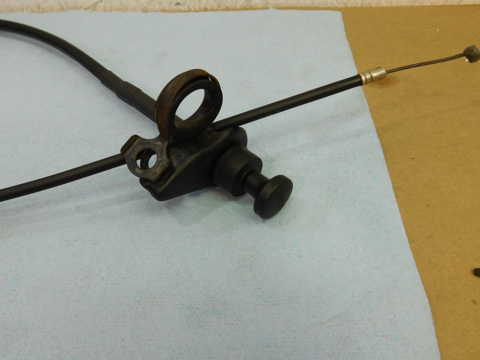 ******************************************************Choke Cable****************************************************** ****************************************************Part Removed From:**************************************************** ****************************************************1983 Honda XL185S**************************************************** ****************************************************Description:**************************************************** ****************************************************Choke cable with bracket**************************************************** ****************************************************Condition:**************************************************** ****************************************************This is a used part. This choke cable has been repaired with srink tubing because the outer jacket was loose. The cable slides smoothly. The bracket has some rust on it.****************************************************
