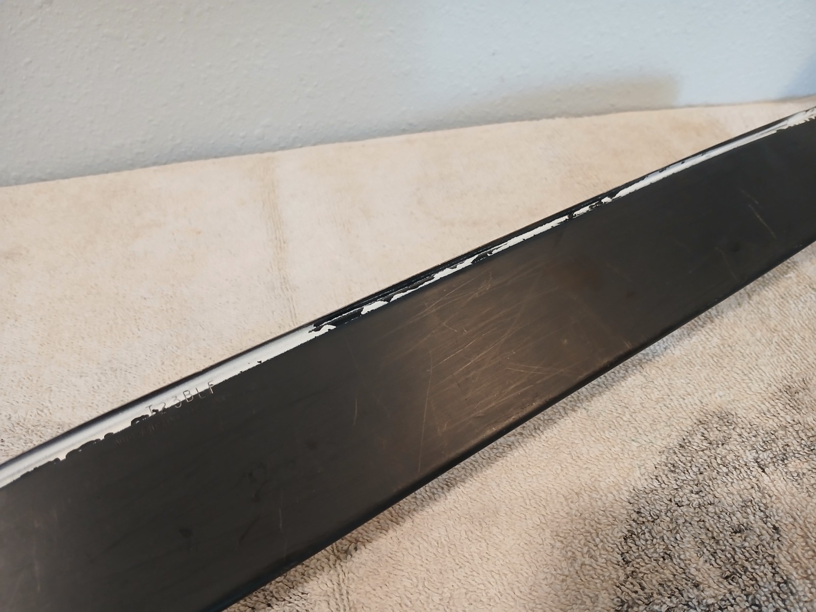 Metal door visor for the driver (Left side) door. Black. Underside is green from overspray. The visor is slightly bent from how it had been sitting in storage, but it can be straightened. Some surface scuffs/scratches. Please review all images carefully for condition. Sold as is.