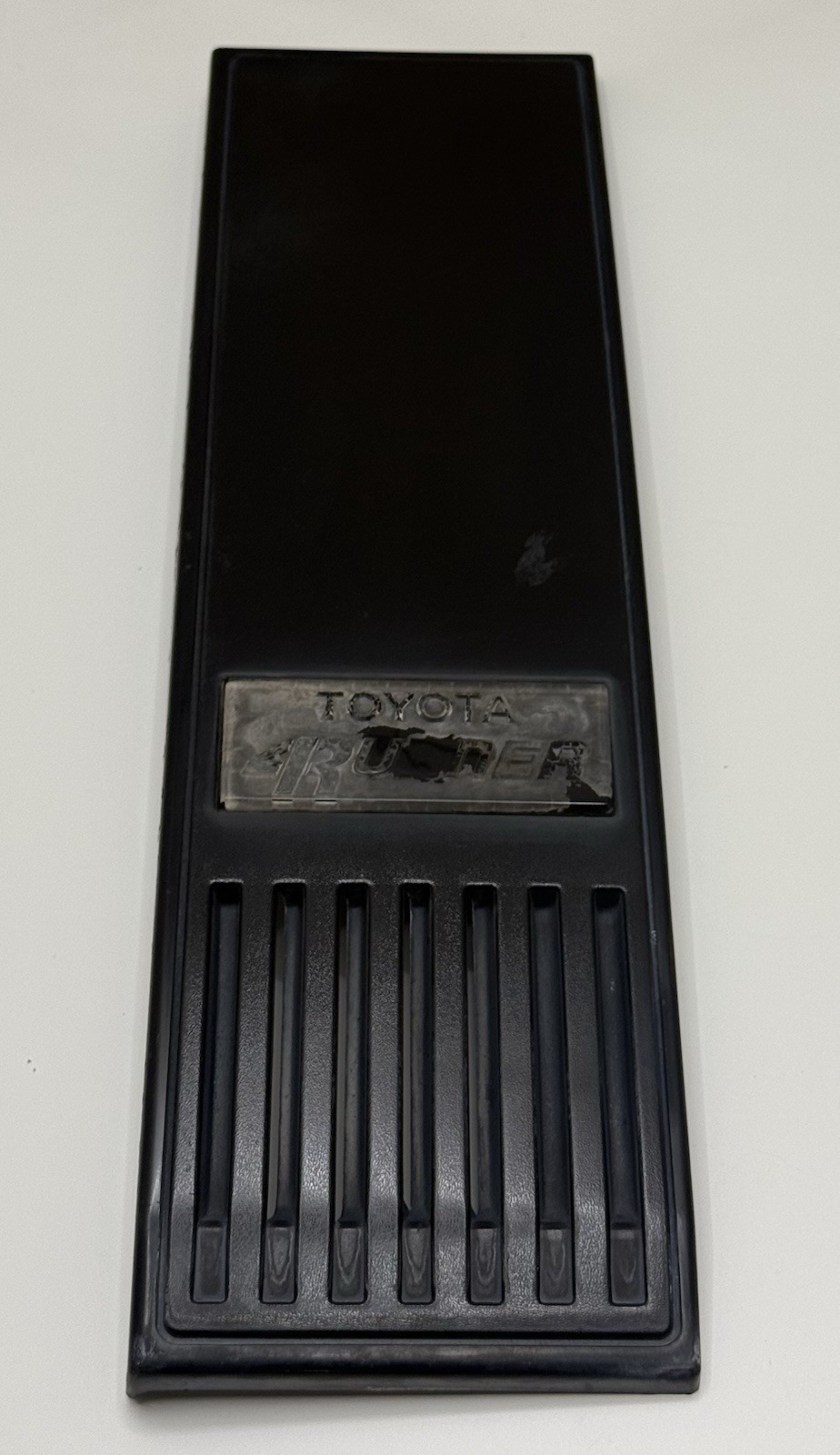 OEM Exterior B-Pillar Trim Panel Set for 1984–1989 Toyota 4Runner Original Toyota left and right B-pillar exterior trim panels from a first generation 4Runner. Hard-to-find OEM pieces that retain proper fitment and factory texture. This set shows more wear on the badging compared to typical preserved examples but remains a solid option for a driver, trail build, or restoration project. ⸻ Condition Details • Complete LH & RH set • Original black finish with light fading and surface wear • Both “TOYOTA 4RUNNER” badge plates present but heavily worn/faded • No major cracks visible on outer faces • Mounting condition appears usable (verify photos for tab condition) • Light scuffs and age-related wear throughout ⸻ Fitment • 1984–1989 Toyota 4Runner (1st Gen) Notes • OEM Toyota plastics—superior fit vs aftermarket • Ideal for restoration, refinishing, or budget-conscious builds • Badge plates could be refinished or replaced for higher-end restoration • Please review all photos carefully for condition ⸻ Item Specifics • Brand: Toyota (OEM) • Type: Exterior B-Pillar Trim Panels • Placement on Vehicle: Left, Right • Color: Black • Material: Plastic • Vintage Part: Yes • Finish: Textured OEM ⸻ Shipping • Fast, secure packaging • Local pickup available (Camas, WA)