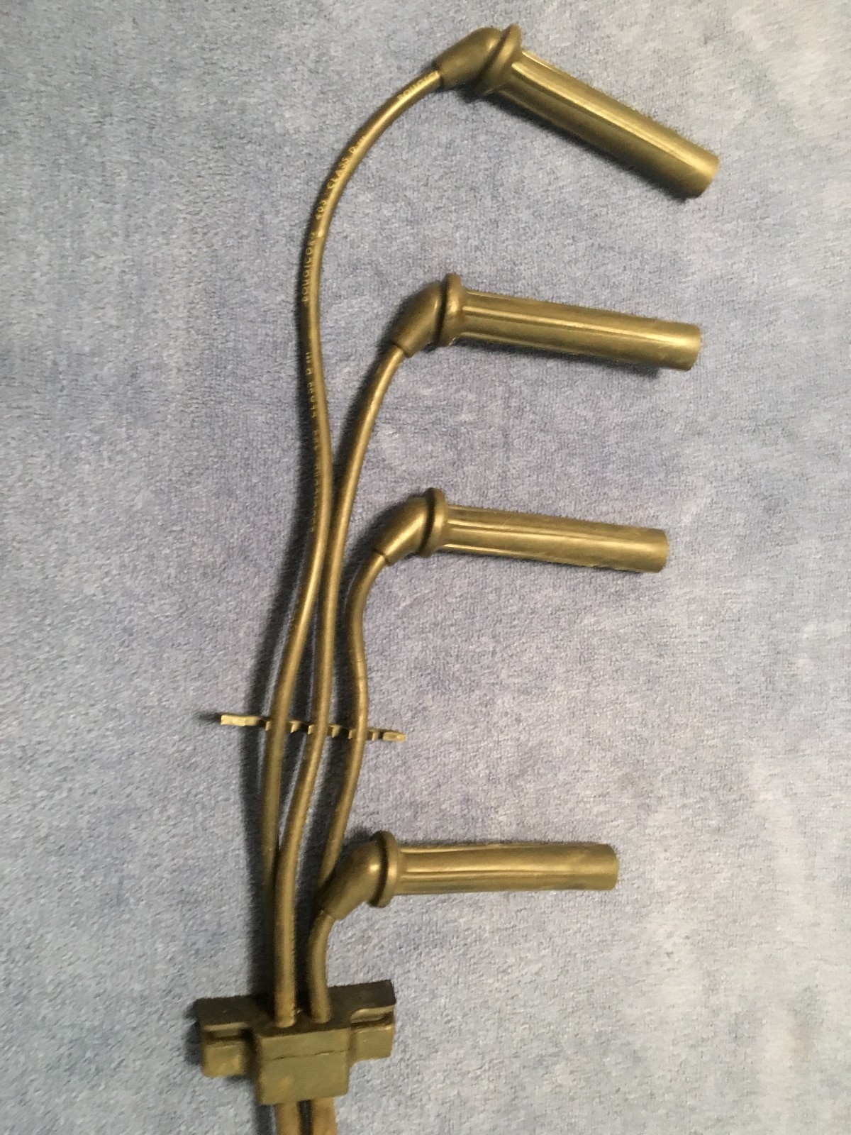 This is a nice set of spark plug wires removed from the engine of a salvaged Classic Saab 900 Turbo. This set of spark plug wires is the original type used by Saab. Bougicord wires with plastic and rubber locating clips.