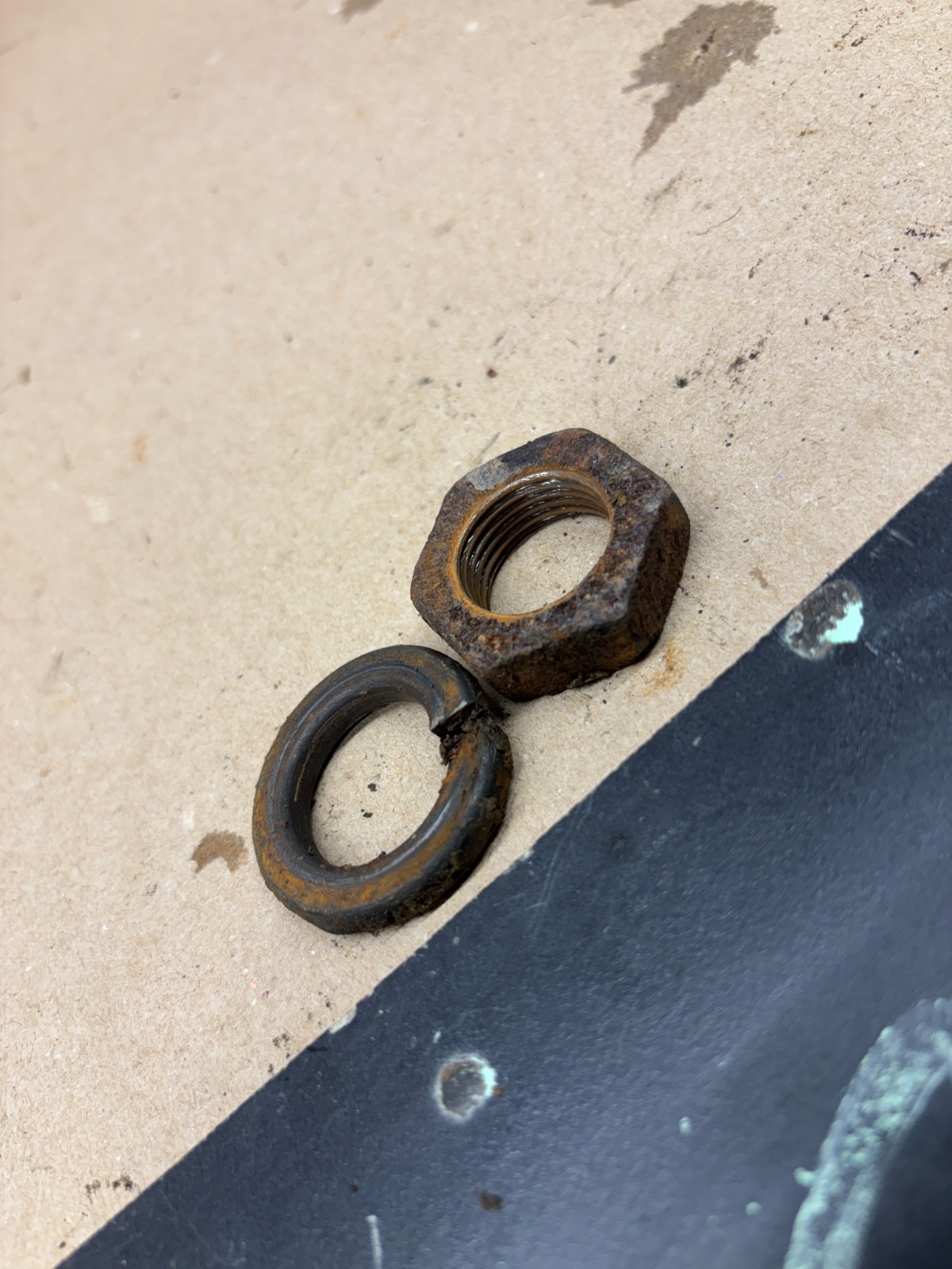 POWER STEERING PITMAN ARM MOUNT NUT AND LOCK WASHER FROM A 1992 F250 4WD. USED OEM PART. NEEDS TO BE CLEANED.