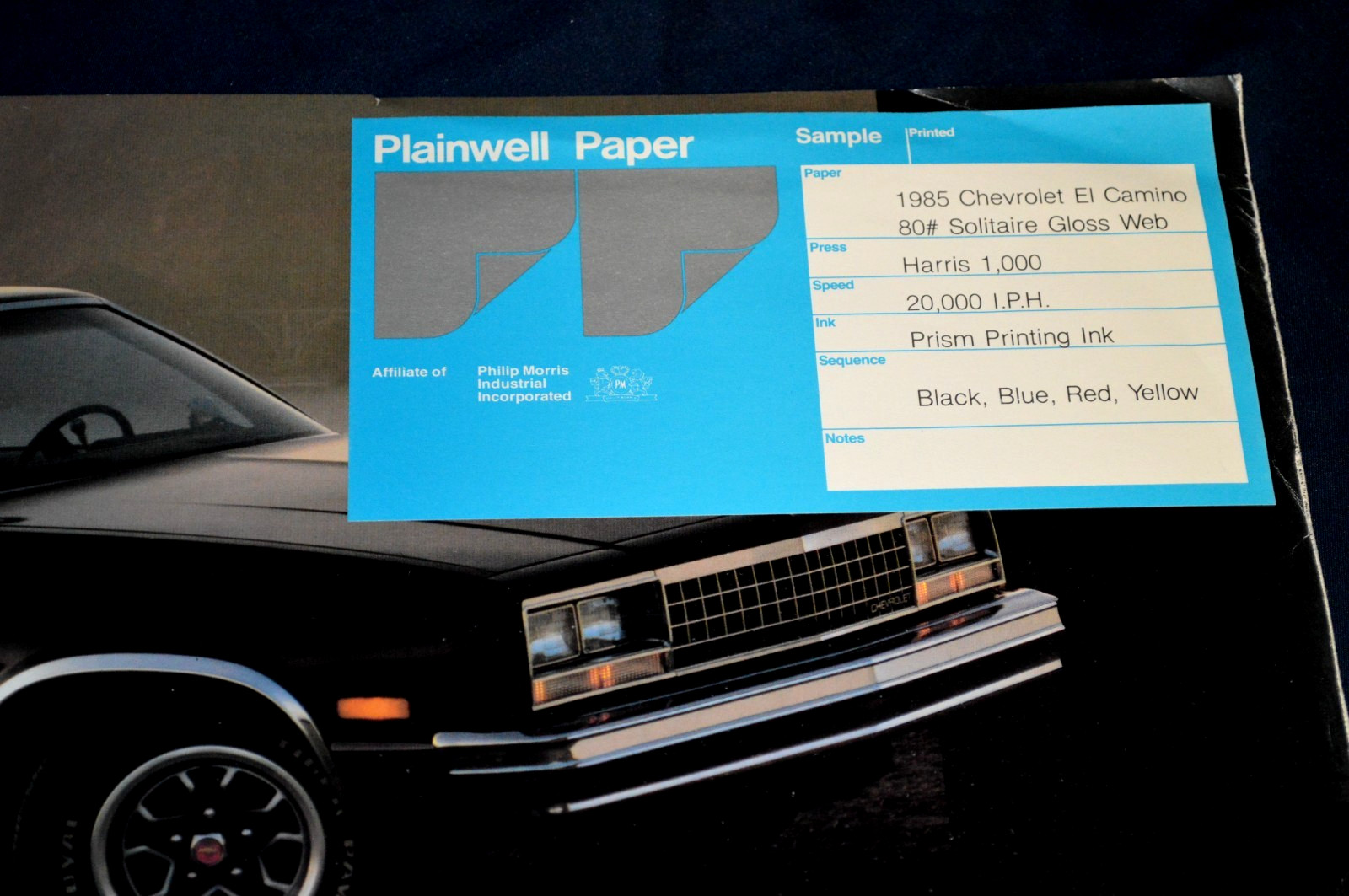 **Here is a very rare** **1985 Chevy El Camino / SS Original Dealer Brochure First Print** **This is very rare. It is one of a few prints made by the print company that was contracted out by GM to send to dealers. I actually got this from that company after it was disbanded. You can still see the original print logo and date inside. This was made to be sent right to GM to be approved.** **It is in good condition. Does show some wear as it was passed around in meetings. Its Over 40 years old.** **Perfect for framing on wall.** **LOOK AT MY** **OTHER LISTINGS FOR MORE ADS, PARTS AND BROCHURES!** **Shipping is located above. Any** **additional brochures purchased will be free shipping as long as they are** **combined in your order. So you only pay shipping for one.** **LAR78**