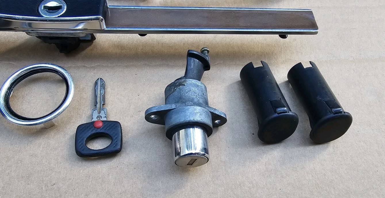 For sale is an original lock set for 1986 through 1989 Mercedes r107 / C107 SL models. Included with this listing are both exterior handles / locks, trunk lock, glove box lock and ignition assembly with tumbler. I have tested each lock and they work smoothly. The ignition tumbler does not bind up and the steering lock engages properly when the key is removed. The chrome on the door handles is in good condition with no pitting. The connector pins on the handle harnesses are clean with some superficial corrosion where the two sections meet. If you have any questions or need more pictures please let me know. Free shipping applies only to the lower 48 states.
