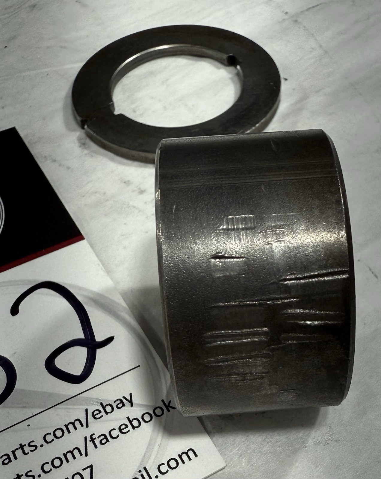 1986-1989 Mercedes-Benz R107 560SL Camshaft Bearing Sleave + Washer (982) Came off the bearing 1160513610 (NOT INCUDED) These parts come from cars that are over 50 years old. If you're looking for something brand new, please consider other options; these are slightly used unless stated otherwise. Due to their age, these parts may have imperfections and flaws, so please review the photos carefully to understand what you're getting. These parts fits most models from 1972-1989 Mercedes Benz R107 C107 { SL & SLC Models 450, 380, 560 } **Condition:** Sold as-is. What you see in the photos is what you’ll receive.