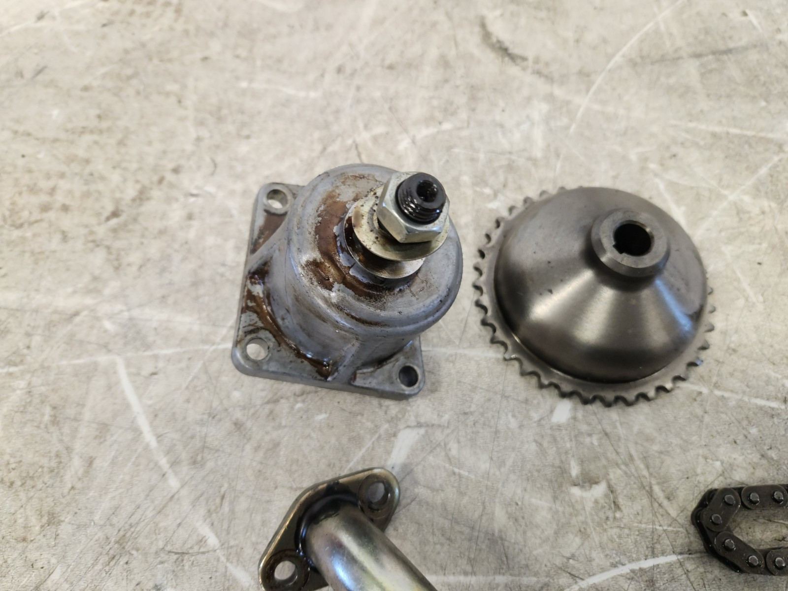 **1986-1991 Mazda RX7 Models 13B Non Turbo Rotary Engine Oil Pump With Both Drive Gears, Chain, Oil Pickup Tube Set In Great Working Condition And In Great Shape As Shown.** **Was Removed From A 1986 Mazda RX7** ships same day or next day depending on what time you buy Will only ship to the lower 48 United States Of America