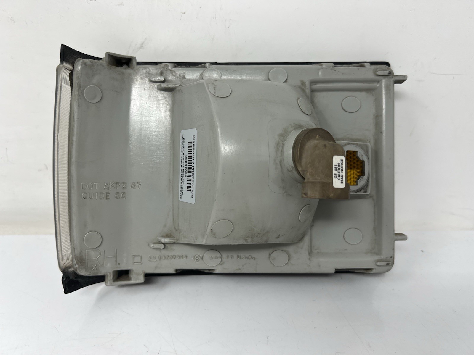 The 1987-1988 Cadillac DeVille Fleetwood FWD RH Corner Light Turn Signal Assembly is a vintage part specifically designed for the front, right side of the vehicle. Manufactured by Cadillac, this assembly comes with a 3-month warranty and carries the OE/OEM Part Number 16507232 and DOT AKP2 87 GUIDE 6C. This product is ideal for those looking to replace or upgrade their turn signal assembly on classic Cadillac models from the 1980s, ensuring proper fit and functionality. \*\*\*\*IMPORTANT INFORMATION \*\*\*\* Please DOUBLE CHECK the part number. The number on the part that you are replacing must be an EXACT match to the part number listed in the heading and/or description of this listing to ensure proper fitment. General Information: This part is used and has been removed with care. Check out the pictures. They are taken of the specific part you will receive. Warranty Information: This used item comes with a 90 Day Warranty (Parts ONLY - NO Labor). What the warranty covers: Parts that arrive defective/damaged/incorrect or become defective within the warranty period. Not included: We do not refund/include or warranty any other expenses including labor, towing, diagnostics or other expenses due to an item being damaged, incorrect, improperly installed or defective.