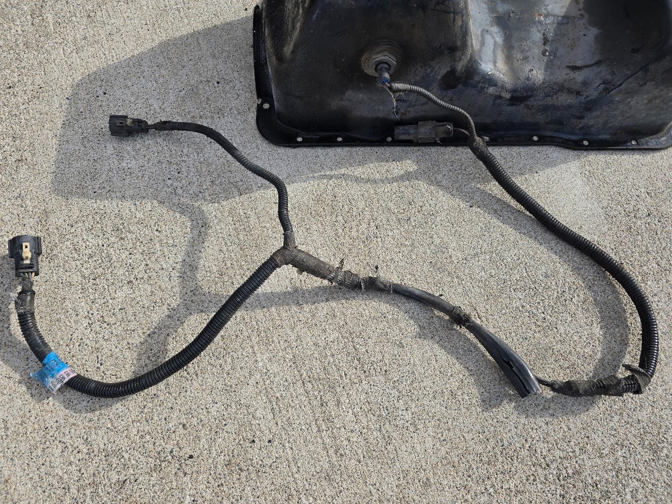 1987-1993 Ford Mustang Foxbody 5.0 Oil Pan. It has bottom dents as pictured. It didn't have any leaks. I'm not sure of the harness condition.
