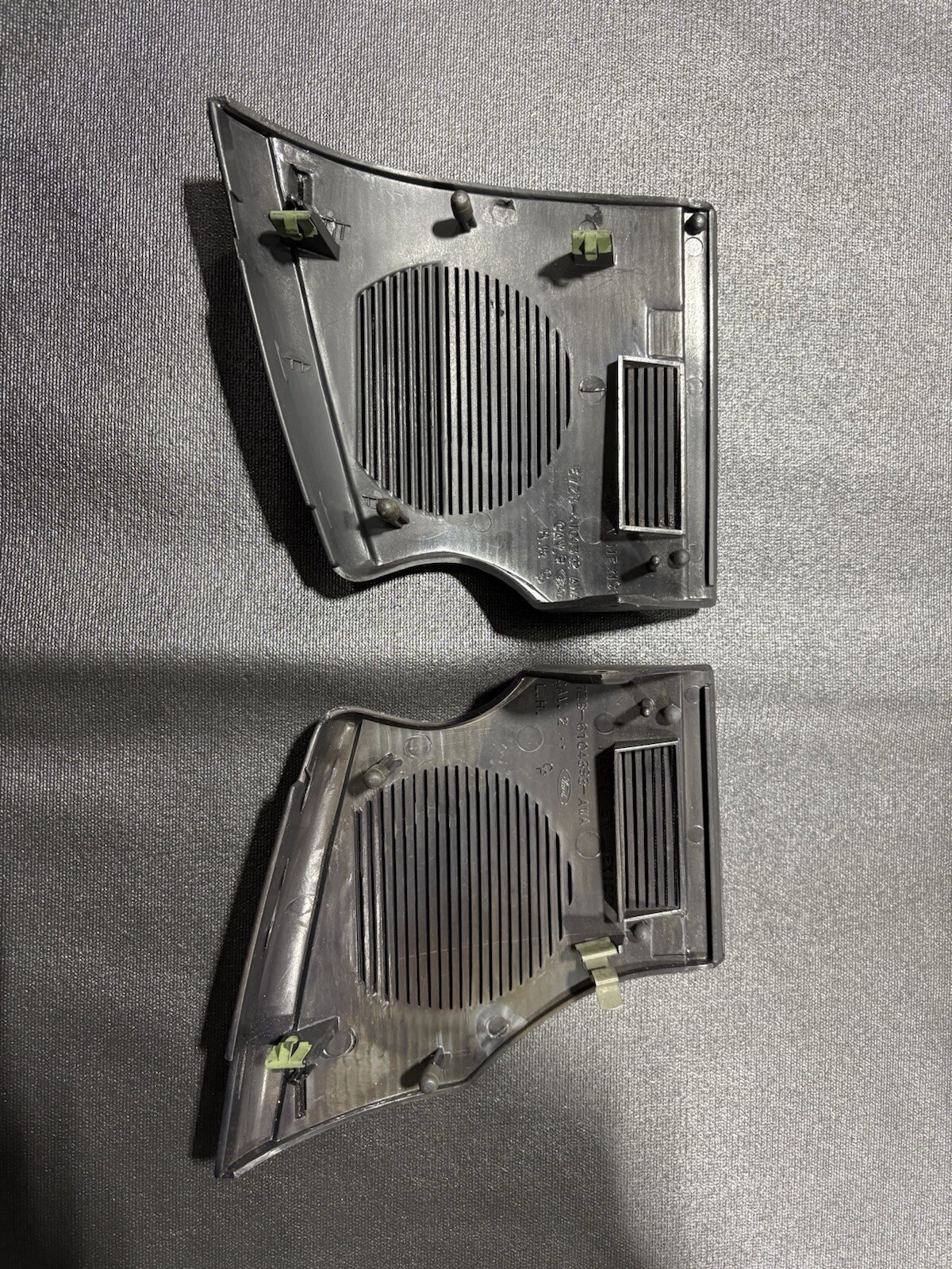 Up for sale is a pair of black speaker grilles for your 1987-93 mustang dash board. These are in great condition with no damage, clips and rubber bumpers included. Thank you!! The FoxBody Garage Mission Statement One part at a time, with you in mind. Here at The FoxBody Garage we strive to bring the highest of quality used parts. Focusing on the FoxBody Mustang community is our passion! We want to help start and finish every project you have!