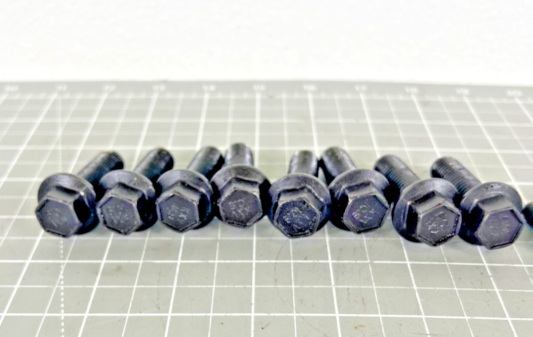 Good transmission adapter plate bolts pulled from a 5.9 Cummins engine. In good overall condition, but shows signs of wear consistent with age.