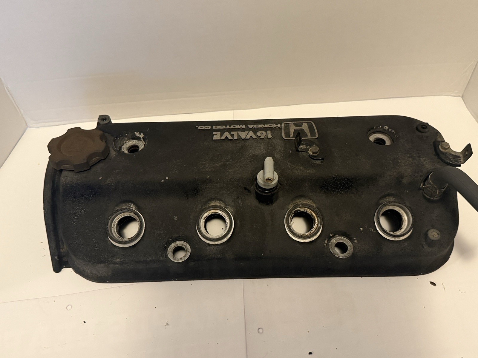 **OEM Honda Valve Cover** removed from a 1991 Honda Accord with a 2.2L SOHC F22A engine. This is a factory steel valve cover with the correct **"HONDA Motor Co. 16 VALVE"** stamping. Interior shows normal oil varnish/sludge consistent with age and mileage. Exterior finish shows wear from normal use. - OEM Honda – not aftermarket - Correct for 1990–1993 Accord 2.2L F22A SOHC engines - No visible cracks or warping - Oil fill cap included - Breather tube included **Notes:** This is a used part. Cleaning and a new valve cover gasket & grommets are recommended prior to installation. **Returns:** 30-day returns accepted. Buyer pays return shipping unless item is damaged or not as described. **Fitment Responsibility:** Please verify compatibility with your vehicle before purchase. Part numbers, photos, and engine type should be matched prior to ordering.