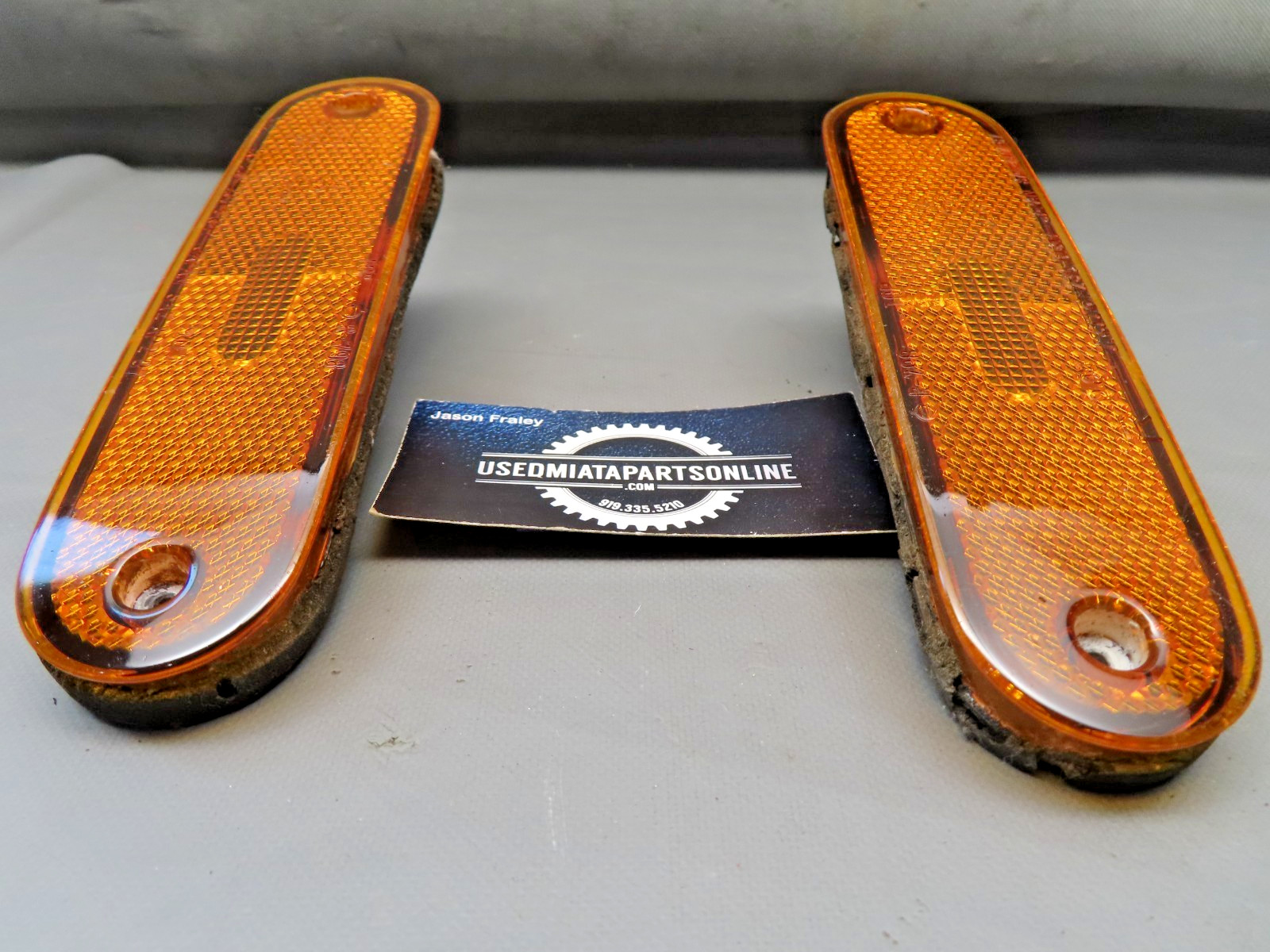 THIS LISTING IS FOR A USED **1990-2005 MAZDA MIATA FRONT SIDE MARKER LIGHT PAIR LEFT RIGHT #1** **.** VERY GOOD USED CONDITION. PHOTOS OF ACTUAL PAIR, ONLY ONE PAIR AVAILABLE IN THIS CONDITION.SEE PHOTOS FOR CONDITION. **SHIPPING** **OUTSIDE THE CONTIGUOUS UNITED STATES IS ADDITIONAL**.
