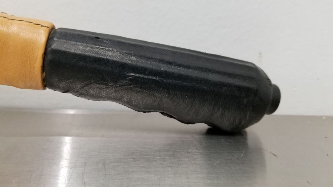 1990 FERRARI TESTAROSSA EMERGENCY BRAKE HANDLE ASSEMBLY TAN AND BLACK LEATHER