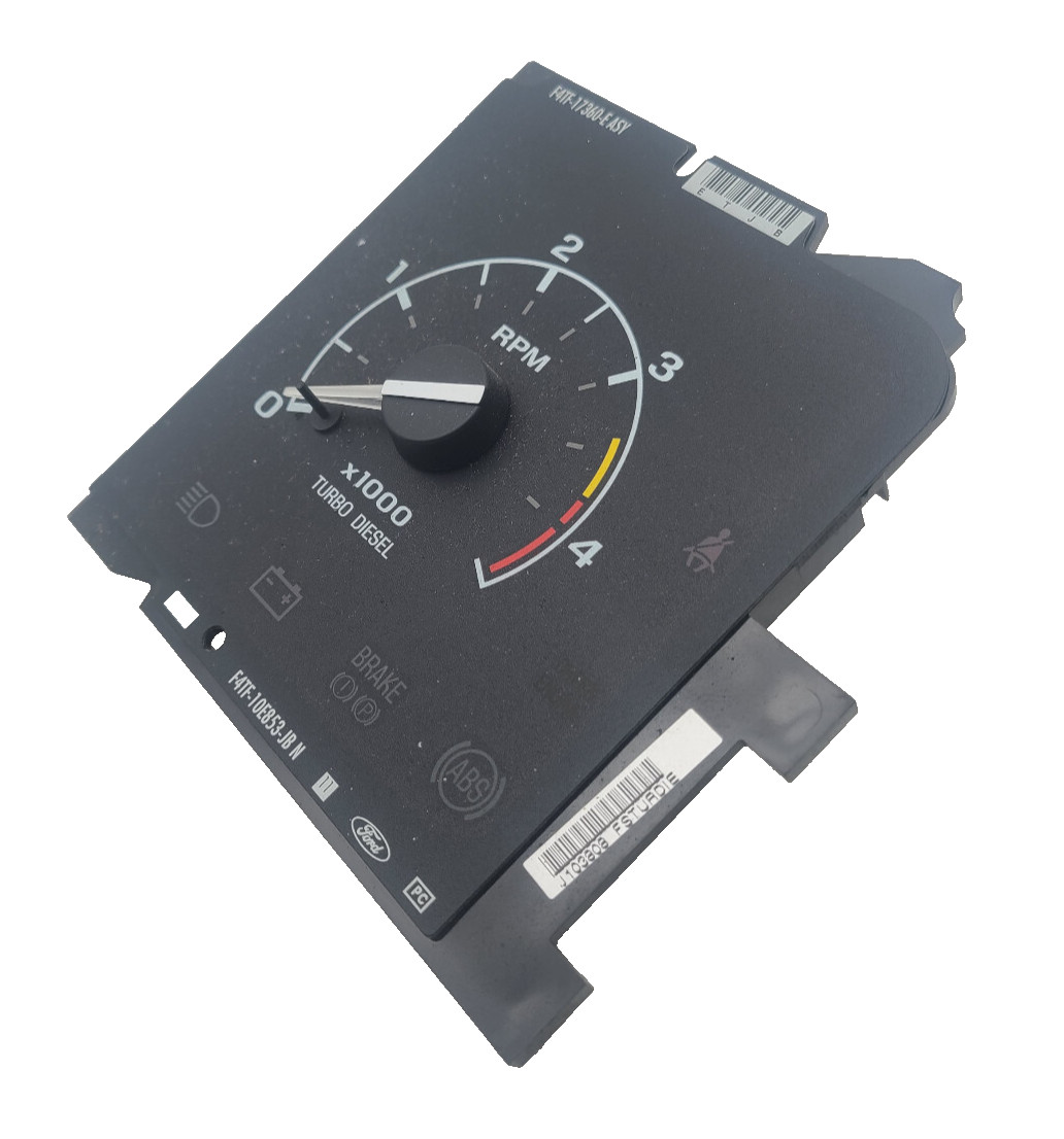 **1992-1997 F250/F350 TURBO DIESEL Tachometer Gauge** **Note- This one says "TURBO DIESEL" on it. Some lesser models do not.** This has been tested and is in excellent condition. Tach goes to 4K RPM Fully cleaned and ready to be used. This will fit all years listed. Just plug it in and you're all set. Will fit Auto or Floor shift Manual. 4wd and 2wd **FREE SHIPPING** **F4TF-10E853-JB** 30 Day Guarantee Please Read - I offer a 100% Satisfaction Guarantee to all of my customers. Simply select “ Contact Seller ” and then for reason, select “ Other ” and Ill get it quickly and answer as soon as I see it. I rely on providing quality items to my customers, at some of the lowest prices anywhere, to put food on my table and feed my Children.