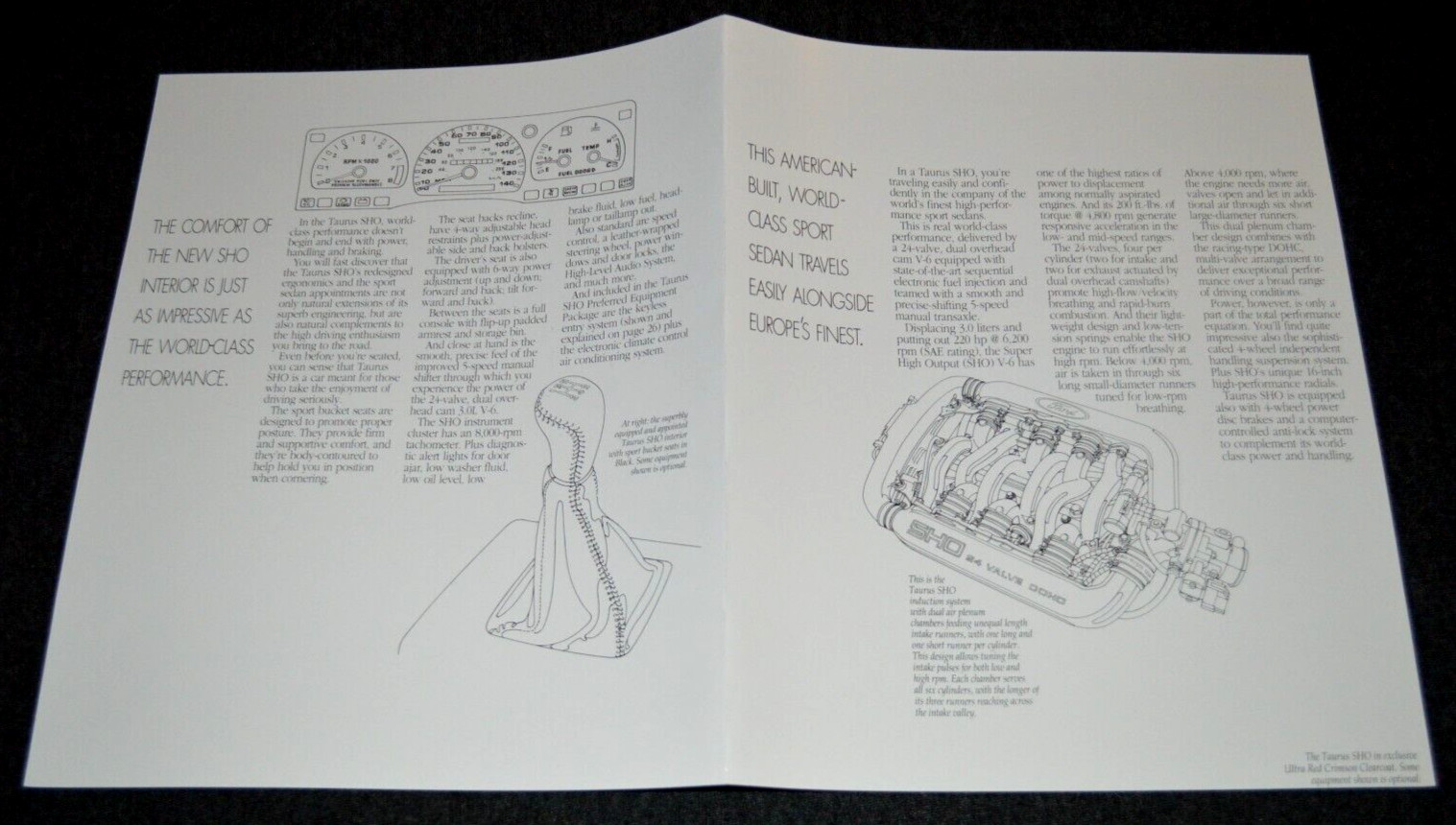 **This is a rare** **1993 FORD TAURUS SHO** **ORIGINAL DEALER PRESS PHOTO FOLDOUT SPEC POSTER** **11X17 inch.** **Perfect for framing or to take with you to show with your car.** **LOOK AT MY** **OTHER LISTINGS FOR MORE PARTS AND BROCHURES!** **Shipping is located above. Any** **additional brochures purchased will be free shipping as long as they are** **combined in your order. So you only pay shipping for one.**