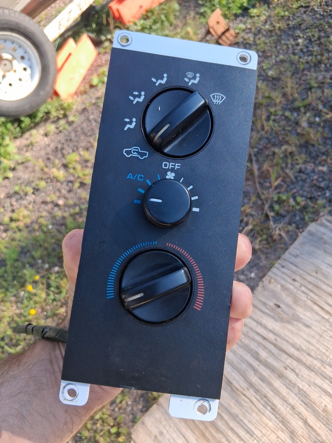 There are two of these and one of them is missing a knob. I will ship the one that has a knob to the first buyer. Please use pictures to help determine condition This came out of a non-running vehicle and has not been tested. One of the knobs is missing. Please use pictures to help determine condition. It's hard to see exactly what the model number is because it has been rubbed off to some extent.