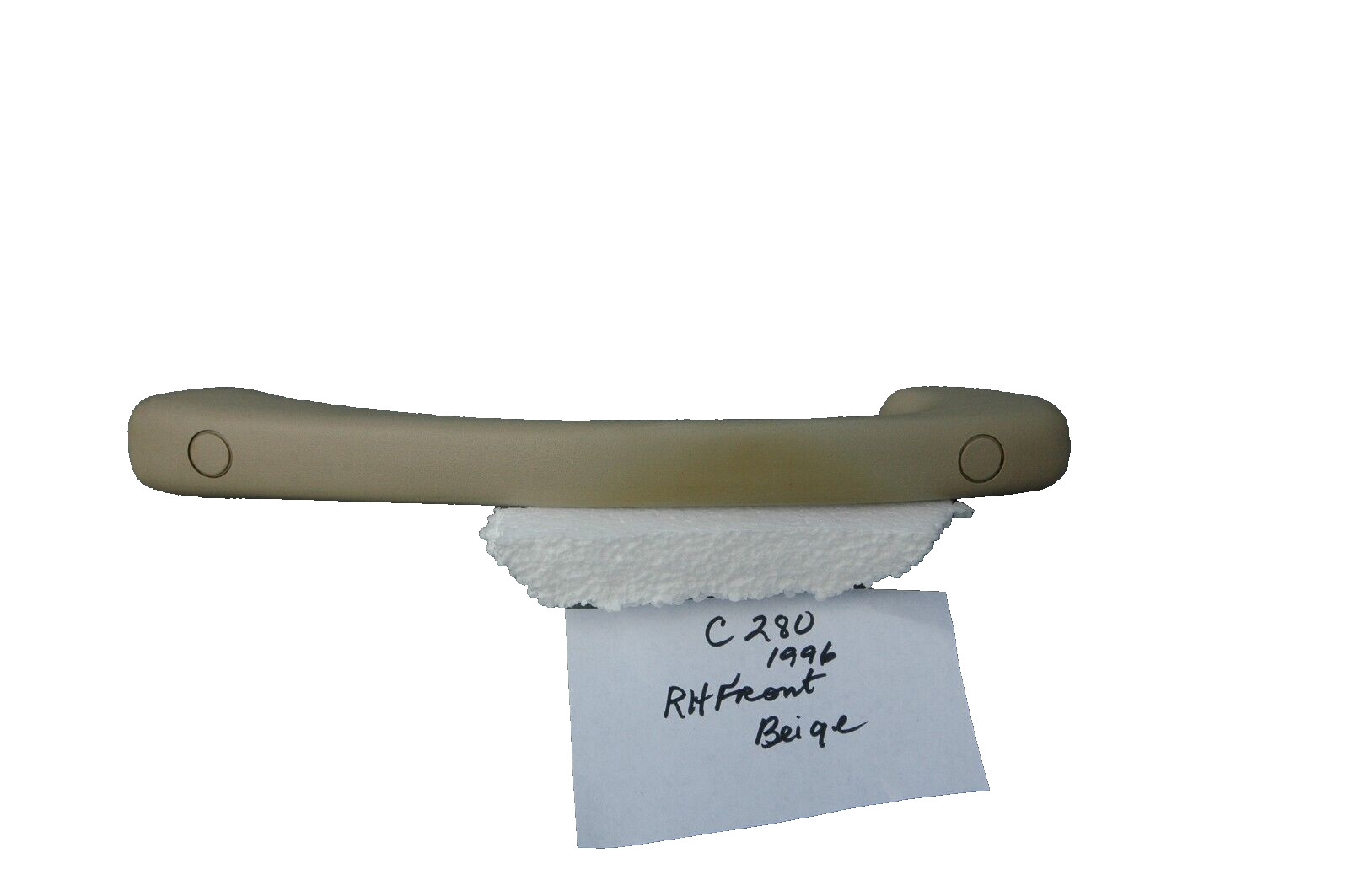 **1994-1997 Mercedes C280 C220 Headliner Grab Handle** **Beige Right Front** **6 Month Warranty** This is out of a 1995 C280 Cleaned and inspected for damage. Good Used Condition. Normal wear. A good replacement for a bad one. Proper fit. Mercedes genuine part. **Your part number must match for the unit to** **work as it should**. Please check photos and enlarge them if necessary for your judgement of condition,features, and part number. The item in the photos is the one you will receive. We can not guarantee color match due to not seeing the car this will go in. All parts we ship are inspected again before we ship to ensure accuracy of description. Thank you and Best of Health. **All parts are cleaned, tested , and inspected. This is our pledge to every customer.)** **By purchasing this item, you agree to our Terms and Conditions:** **The buyer is responsible for confirming part fit. Any and all liability associated with any item listed and sold is the responsibility of the buyer and not Cor-pt-4-s. All electronic items are security sealed to prevent tampering. Check with your technician before purchase, to see if reprograming is required. Please, do not purchase ECU/ECMs for diagnostics. We test each one before it is shipped, if one is returned, we check again, if it is found not to be defective there is a 20% restocking fee + our shipping cost.** **\-\-\---------------------------------------------------------------------------------------------------------------------------------------------------------------------** **Terms and Conditions:** **Shipping** **\\* Free shipping does not apply to Alaska and** **Hawaii** **\\* Processing time for shipping is one day.** **\*Oversize items ; Engines, Bumpers, transmissions, body panels are two day processing.** **\-\-\-------------------------------------------------------------------------------------------------------------------------------------------------------------------------** **Returns** **\\* All returns must be made with in 30 days of order being received by customer. and only if the item is non-functional or differs from description identification.** **\\* We will accept returns for any unwanted parts or items ordered by mistake; Buyer pays for return shipping.** **\\* Return items must be in the same condition as received, disassembled,** **painted, or altered items will not be accepted for return.** **\\* Ask any questions prior to purchase to verify the fit for your application. You can also check with your local dealer or independent garage.** **\\* Buyer is fully** **responsible** **for return shipping cost.** **\*Do not purchase electronic parts for the purpose of testing.