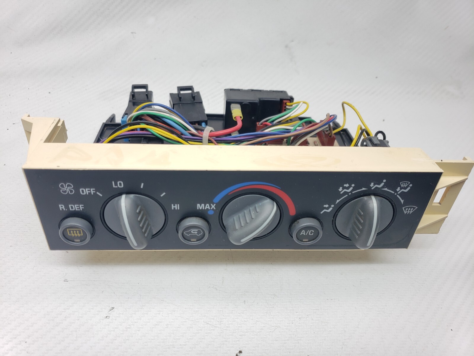THIS IS A NICE A/C CONTROL UNIT FOR 1995 CHEVY/GMC TRUCKS & TAHOES AND SUBURBANS. COMES WITH REAR DEFROST BUTTON ,OBSOLETE ON PICKUPS .IT HAS BRIGHT CLEAR LETTERING . IT IS IN GOOD CONDITION AND IN WORKING ORDER. THE UNIT HAS BEEN REPAIRED WITH HOT GLUE ,PLEASE SEE PICTURES. ALL FUNCTIONS WORK 100% PLEASE REVIEW ALL THE PICTURES BEFORE MAKING THE PURCHASE