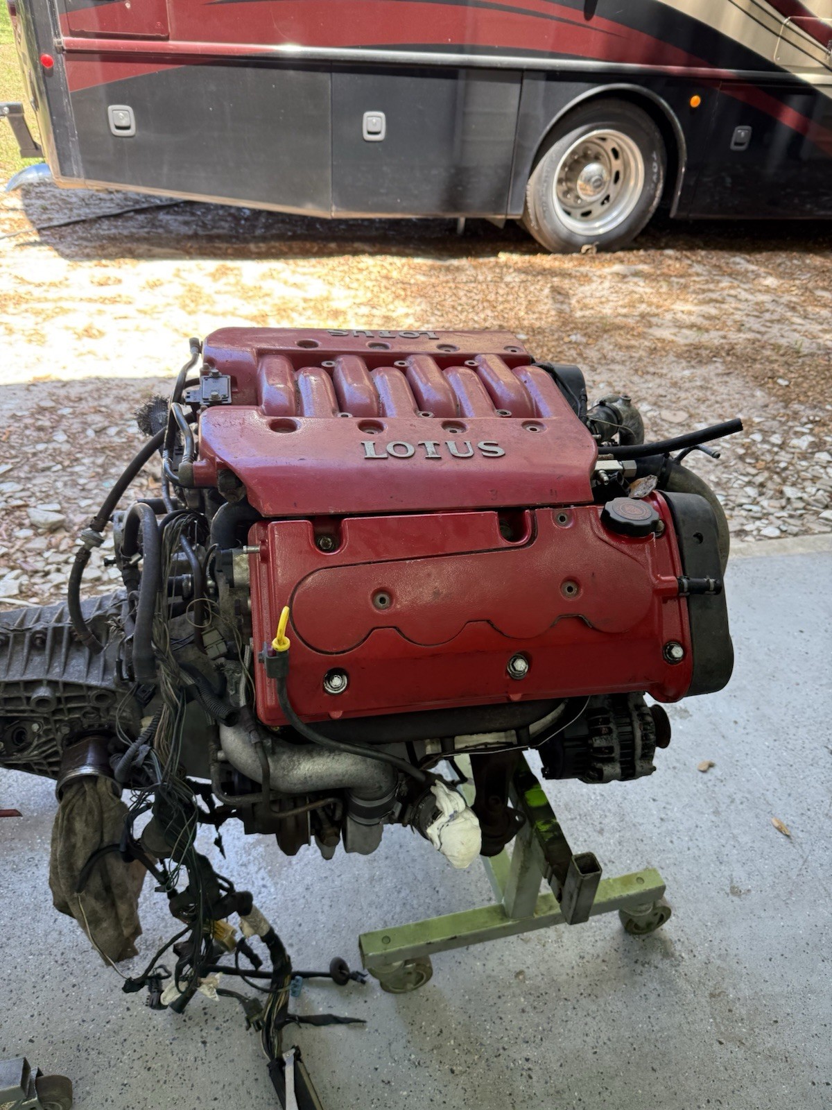 PLEASE READ ENTIRE DESCRIPTION 1997 lotus esprit v8 motor and trans The motor is complete as shown in picture with engine harness. The engine will need rebuild, according to the guy i got the care from it jumped timing when in is neighborhood. The motor is locked up , looks like he tried he tried to fix it himself and undid he main timing cog. When i drained the oil it did have water in it. It is complete with accessories, turbos , starter etc. i dont know what is good or not. Transmission seems to be in good working order. Perfect for someone that wants to rebuild on the side. 9500 obo