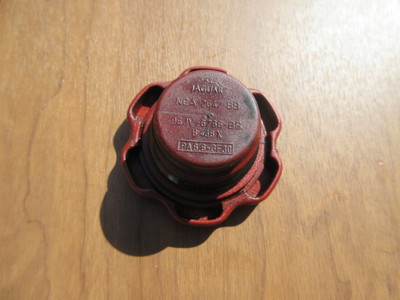 **Item Description:** This is a good working OEM oil filler cap for the XK8 and XJ8 series cars. Came off of a 2000 XJR. Has a good rubber seal and clicks when tightened. Jaguar part number: NCA2647BB