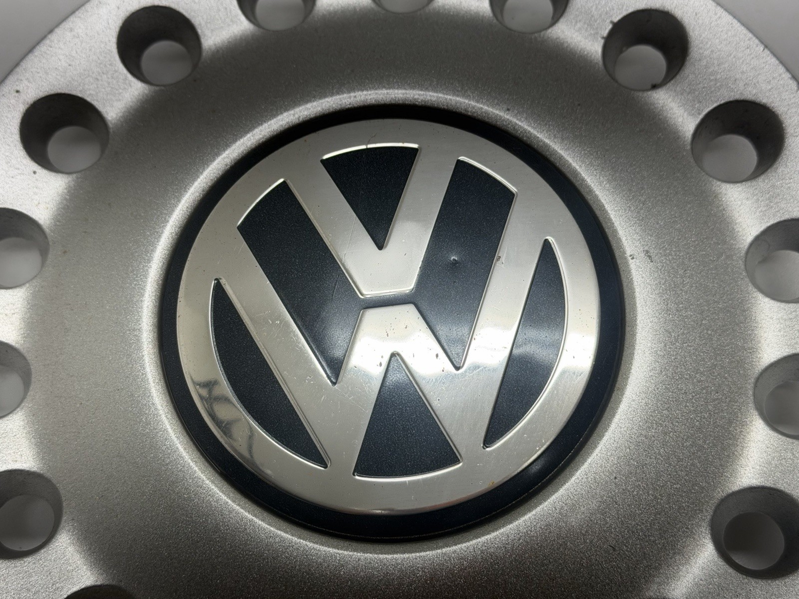 Up for purchase is a USED OEM center cap for SOME 1998 - 2005 Beetle vehicles. This center cap is in good, used condition with cosmetic wear, scuffs, scratches, corrosion, dings, dents and peeling clear on the inner chrome logo portion and outer painted section from previous use. No cracks, breaks or broken tabs. You will need to pop off one of your existing center caps to match the part number as VW has a few different center caps with similar looking faces. This one has the part number 1C0 601 149 A on the back. Good for a daily driver, not for a show car. Photos are of the item you will receive, so please inspect photos for condition and ask questions prior to purchase. **\*To prevent fraud, this item is stamped with a custom made heat stamp that melts a mark into an unseen portion of the part to prove that the part came from me. Returns for items damaged during shipping MUST bear this logo or else the claim will be dismissed. Any alteration to the marking will also cause the dismissal of a damage return. If you have any questions about this, please contact me prior to purchase.**