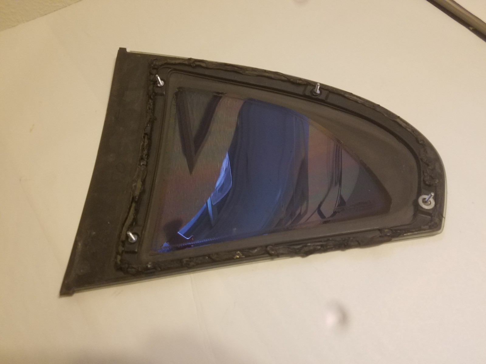 1999-04 Ford Mustang coupe passenger side quarter window glass. May or may not have aftermarket tint, pictures are for illustration only. Mounting studs are intact. May need some cleaning.