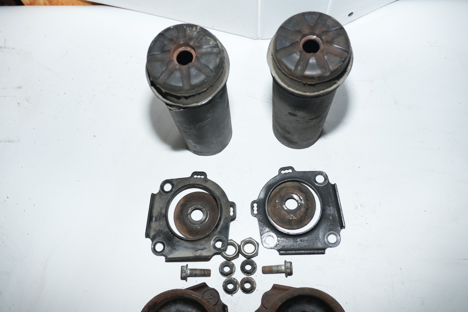 **Description:** Upper strut mounting hardware set removed from a 1999–2004 Ford Mustang. Includes the correct hardware needed to mount the front struts to the body. Hardware is used and in good serviceable condition with normal wear from use. Ideal replacement for missing or damaged factory hardware. Please review all photos to confirm condition and contents before purchasing. **Fitment:** 1999–2004 Ford Mustang **Condition:** Used – good condition **Included:** • Upper strut mounting hardware set (as shown) **SKU:** CP **Shipping & Handling:** Ships within 1 business day of cleared payment. Securely packaged for safe delivery. **Returns:** 30-day returns accepted. Buyer pays return shipping unless the item is defective or not as described.