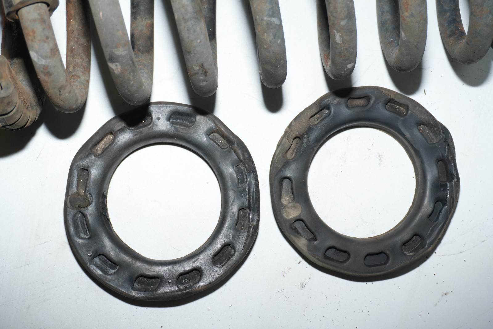 **Description:** Front coil spring set removed from a 1999–2004 Ford Mustang equipped with the V6 engine. Includes the spring bushings as shown. Springs are used and in good serviceable condition with normal wear from use. No cracks or damage unless clearly shown in photos. Ideal replacement for worn or damaged front suspension components. Please review all photos carefully to verify condition and ensure proper fitment. **Fitment:** 1999–2004 Ford Mustang V6 models (3.8L / 3.9L) **Condition:** Used – good condition **Included:** • Front coil springs (pair) • Bushings (as shown) **SKU:** CU **Shipping & Handling:** Ships within 1 business day of cleared payment. Carefully packaged to prevent damage during transit. **Returns:** 30-day returns accepted. Buyer pays return shipping unless the item is defective or not as described.