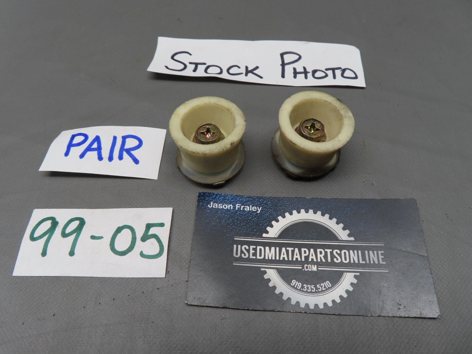 THIS LISTING IS FOR A USED **1999-2005 MAZDA MIATA WINDOW GLASS BUSHING GUIDE STOP NB1 NB2 -- PAIR** **.** VERY GOOD USED CONDITION. STOCK PHOTOS OF ONE PAIR, MORE THAN ONE PAIR AVAILABLE IN SIMILAR CONDITION. SOLD IN PAIRS, ENOUGH FOR ONE WINDOW. PAYPAL ACCEPTED. **SHIPPING** **OUTSIDE THE CONTIGUOUS UNITED STATES IS ADDITIONAL**.