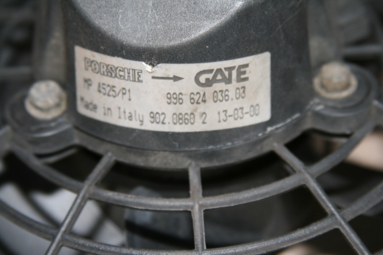 Porsche 996 engine compartment cooling fan. In great condition. Fits all 996 from 1999-2005. **General Policies and Terms & Conditions** Customer Satisfaction is our #1 priority. If for any reason you are not 100% completely satisfied with your purchase, please contact us immediately before leaving feedback so we may have the opportunity to make it right! California residents are subject to 8% sales tax. **_Shipping and Handling:_** All orders are guaranteed to ship within 1 business day of payment, Monday through Friday. Expedited and/ or overnight shipping available upon request for additional charge. Direct International Shipping available upon request. **_Guarantee:_** All parts are carefully inspected and/ or tested to ensure functionality and come with a 14-day standard warranty. If the part fails to operate within the warranty period we will replace the part with a functionally equivalent part or refund the part purchase price, at our option. No guarantee of color match for exterior or interior parts. **_Return & Refunds:_**We offer a 14-day ‘no questions asked’ return policy. Please contact us within 14 days of delivery to obtain a return authorization. Buyer is responsible for all return shipping charges, unless part is not as described, defective and/ or damaged or returned as a result of seller error. Parts returned as a result of buyer error, including but not limited to fitment, compatibility, misdiagnosis or a ‘change of mind’ will only be refunded the original cost of the part, less the actual shipping cost, regardless of whether or not the part qualified for “Free Shipping” and may incur an additional 15% restocking fee. All parts must be returned in original packaging, complete with all original components in the same condition as shipped (all parts are specially marked for authenticity.) Refunds will only be processed after receipt and satisfactory inspection of return. Absolutely no refunds for labor or installation. **_Compatibility:_** Buyer is responsible for determining compatibility of part. Please contact your local dealer if there are any doubts about fitment and/ or compatibility.
