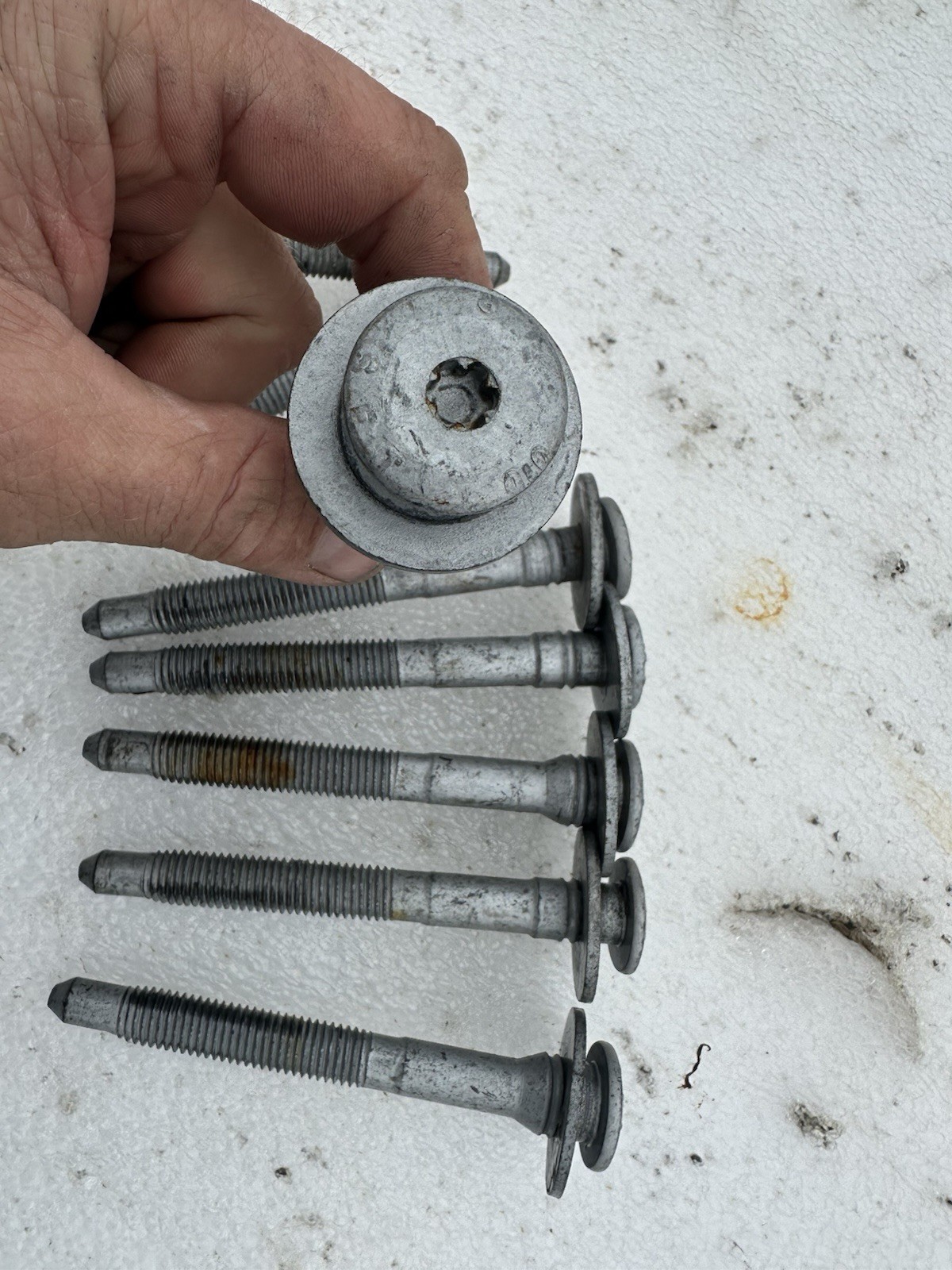 Good used OEM Ford f-250 f-350 99-16 truck bed mounting bolts. Uses T-50 or TP50 Torx bit 6 long 2 short. Will not fit F-150 or older Fords.