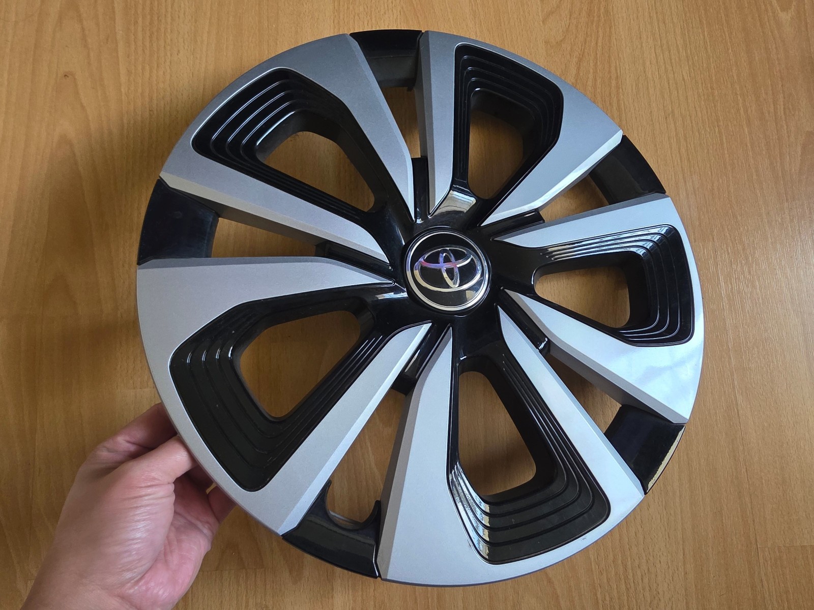 **(1x) Single Genuine OEM 2017-2019 TOYOTA PRIUS PRIME HUBCAP/WHEELCOVER** **(1x) 15" INCH HUBCAP** **SILVER AND BLACK FINISH** **NO BROKEN CLIPS** **100% Genuine ORIGINAL EQUIPMENT HUBCAP-NOT AFTERMARKET** **OEM Toyota part # 42602-47241** **FITS: 2017-2019 Prius Prime equipped with the 15" Factory wheels(shown in the last photo)**