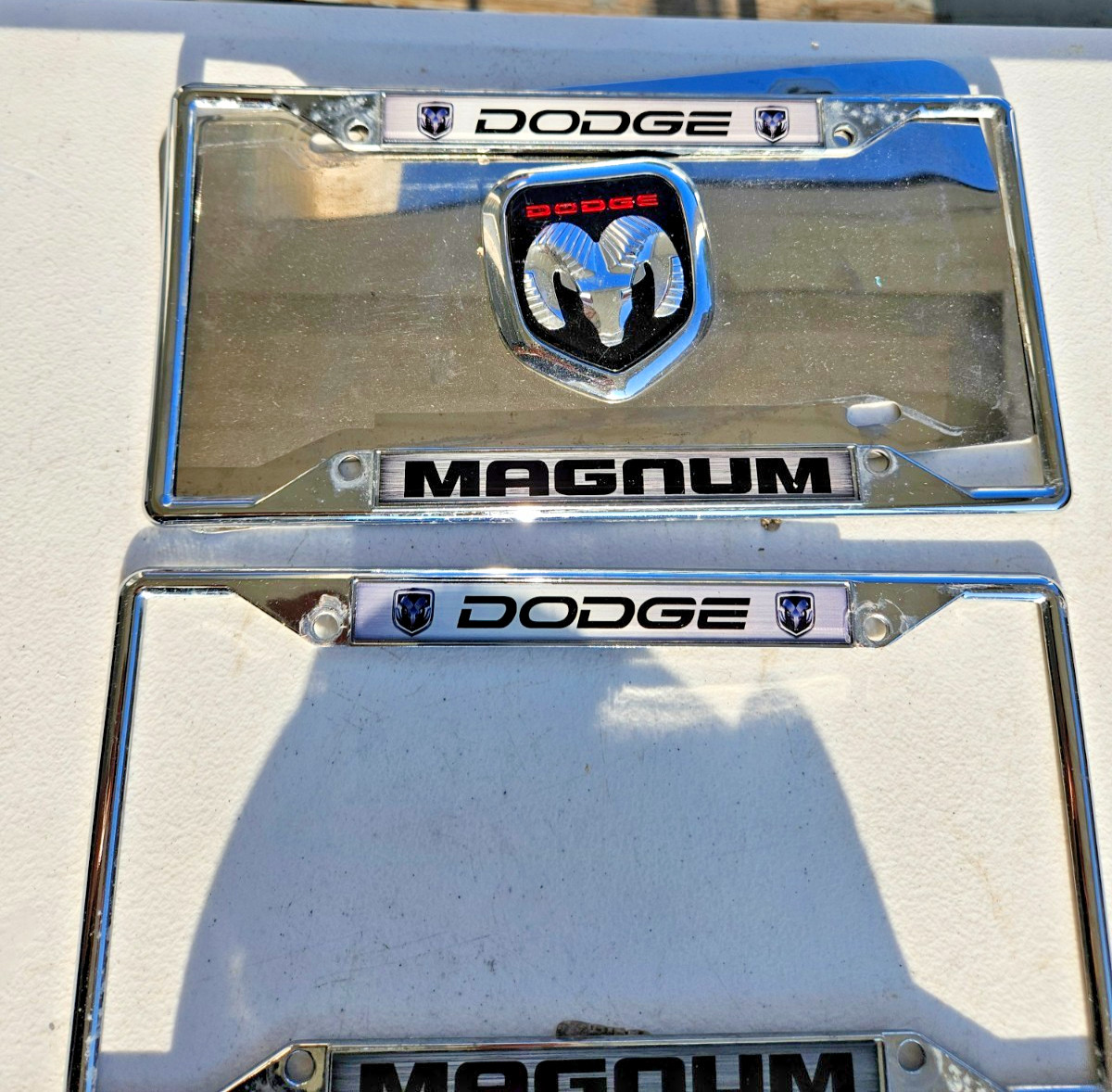 2 Dodge Magnum Logo License Plate Frame (Chrome & Vintage Magnum 80's Hat /cap Magnum 80 S Kohler Engines Snap back Truck Hat/Cap All good used condition see pitchers SOLD ASIS NO RETURNS