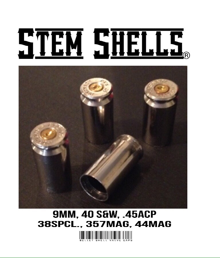 This is a unique addition to any vehicle - car, truck, hot rod, muscle car, motorcycle, dune buggy, sand rail, tractor, riding mower, Segway, dirt bike, bicycle, tractor, riding mower, trailer, wheelbarrow, dolly, wagon, stroller, wheelchair, etc. These are authentic 'STEM SHELLS®' brand valve stem caps, (Look for Logo), 8 per order (standard USA), made from pre-fired 40 cal bullet cartridge casings (bullet shells). These have plastic caps inside. Adds a subtle cool touch to your ride. One Set To Keep - One Set To Give \*\*Manufacturers vary, but all four will match. Some have nickel primers, some have brass. **Add "note to seller" of your choice**. They make a great gift for the hot rodder, hunter, truck driver, farmer or gun enthusiast! Hand made in USA by an American! Buy a couple sets today! Check Out Our Other Items!! Make great Stocking Stuffers!