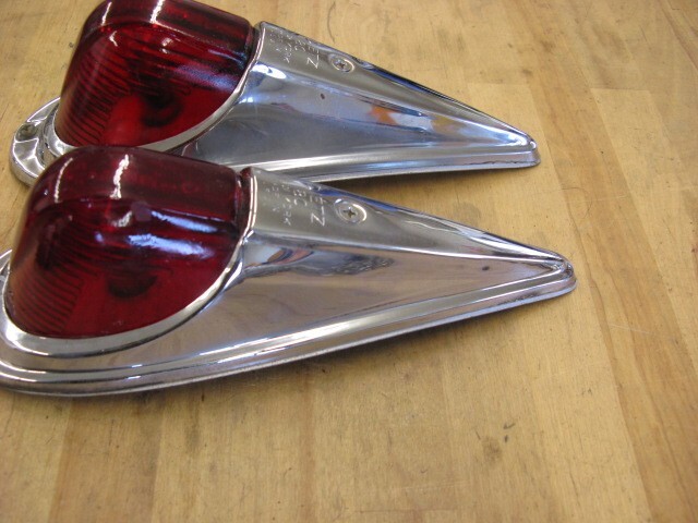 2 Vintage Dietz 80 cab marker Lights with new light socket repair kits. New12 volte bulbs and gaskets. Red glass lens and Chrome Plated tops. 9 1/4" long with new gaskets This is for 2 at $150.00 and free shipping If you have cab lights or parts of lights to sell or trade. Contact us and send photos of them. Then I can send you a offer. I have 200 or more listing for vintage lights in my store.