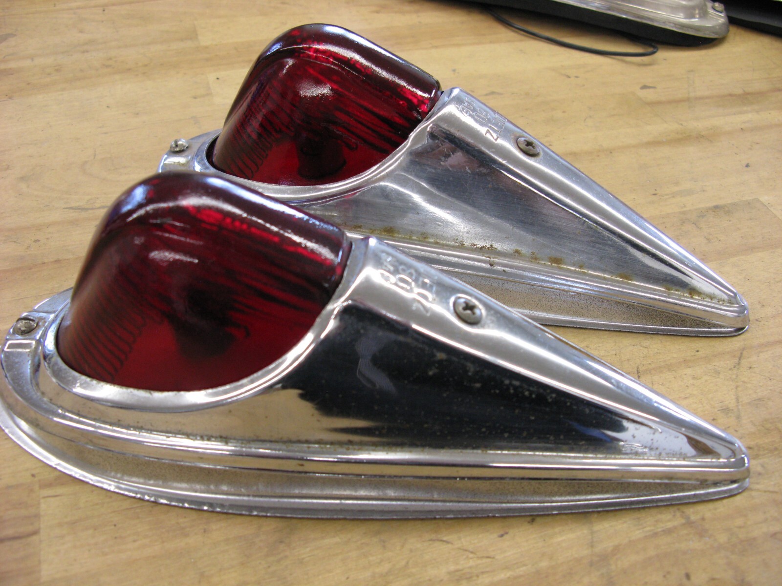 2 Dietz 80 Flat Roof cab marker lights. Yes the big ones 9 1/4" long with new light socket kits ,12 volt bulbs and Glass lens and spot rust on covers and gasket. This is for a set of 2 lights at $150.00 and Free shipping I have 190 or more listing for cab lights in my store.