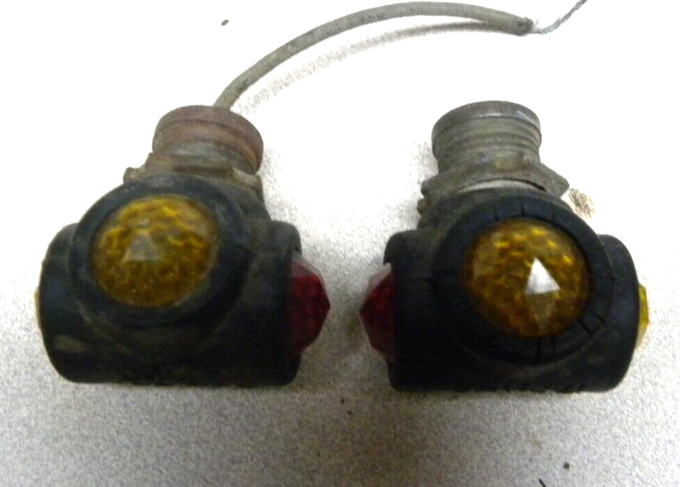 We have two vintage Do Ray #1106 Triple Jewel Amber & Red Marker Lights. Glass, good condition, dating from 1930's-40's. Comes with brackets. Believe these to be 6 volt, although have not tested. For additional information or pictures please contact. Shipping $10.50 in U.S. IF ANY QUESTIONS PLEASE ASK BEFORE PURCHASING.