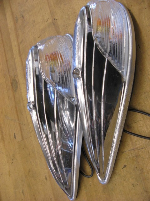 2 Electroline remanufactured lights with Clear glass lens. New socket repair kits and New Amber 12 Volt bulb New gaskets and Chrome tops are 9.5 out of 10 on Chrome This is for 2 lights at $150 and Free Shipping I have 200 or more listing for vintage light in my store.