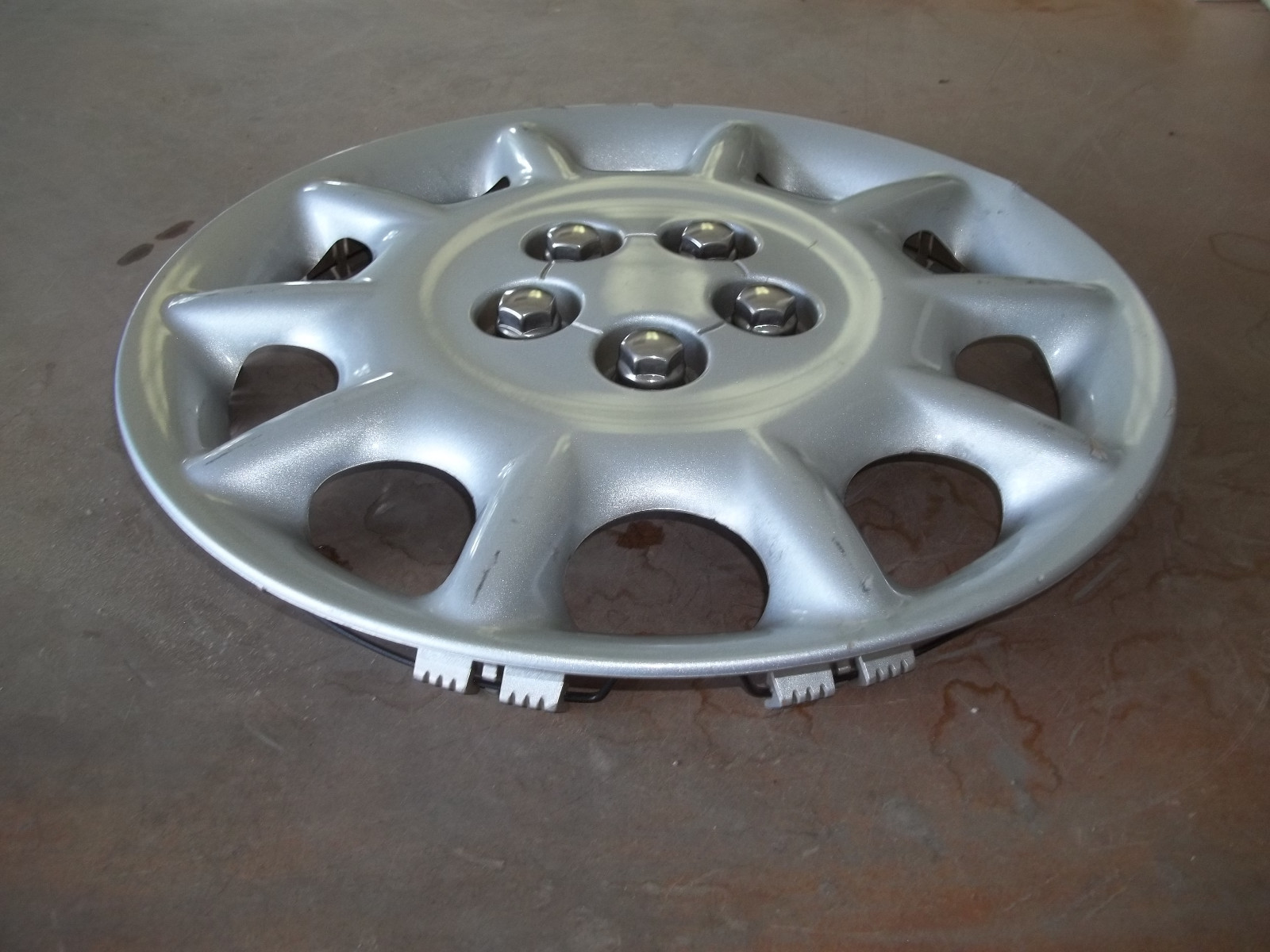 One single 2000 Chrysler Sebring (Convertible) 15" factory full wheel cover.Silver color finish.This is a good used cover with MANY deep scratches / scrapes and marks.These scratches / scrapes and marks will be noticeable from even a short distance.Deep curb gouges or dings on outer edge.The original finish is VERY faded and worn due to time.Staining and markings that do not polish off.Finish faded different shades.All mounting clips in good working order.On a scale from 1 to 10, it rates a "5" or less in condition.Buyer to pay shipping with a flat rate of $15 within the continental U.S..Elsewhere there are additional charges.Accept most methods of payment.California buyer to pay state sales tax.
