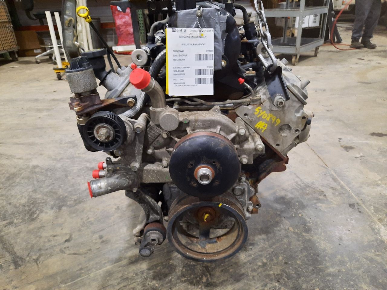Item Description **6 MONTH WARRANTY!! 60 DAY NO HASSLE RETURNS!!** **This for a USED OEM Engine / Motor Assembly Assembly pulled from a 2000 SILVRDO15 with 117000 actual miles on it.** **Here are our part notes about this specific part:** **ET,4.8L,117K,RAN GOOD** **Our Part #: 300-05448, 4319209** **Our Stock#: 5Y0899** Please see the fitment section below to make sure this will fit your vehicle. Pay special attention to any options listed!!! In some cases, it may only fit vehicle with certain options or specific ID#s as listed below. **SIERRA 1500 PICKUP 00 4.8L (VIN V, 8th digit), AT** **SILVERADO 1500 PICKUP 00 4.8L (VIN V, 8th digit, 8-294), AT** **TAHOE 00 4.8L (VIN V, 8th digit)** **YUKON 00 4.8L (VIN V, 8th digit)** Whats Included? Whats Included? FAQ/ Help Shipping Payment Returns/Warranty #### Whats Included? ``` Here is a short description of what will generally be included with your item. If you would like more information or are unsure if something will come with your item, PLEASE ASK!! A/C Compressor: Includes the clutch/pulley assembly A/C Condenser: Sensors and hoses are not included ABS Units: Include the ATTACHED electronic module unless otherwise noted Alternator: Includes the pulley. Any brackets are not included Axle/CV shaft: Does not include the axle nut Blower Motor: Include the squirrel cage/fan blade Caliper: Includes the bracket and slides. Slides are not covered under warranty Column Switch: Includes wiring (if applicable) up to the first point it can be unplugged Control Arm: Includes the ball joint and any bushings Coolant Overflow Bottle: Cap is included Cowl Vent Panel: See Our Part notes, often sold as one side only Differential Carrier: Does not include axles Door Trim Panel: Includes handle and armrest. Does not include window/lock switches Engine: Included for convenience unless otherwise noted. These parts are not covered under warranty: Intake manifold, fuel injectors, oil pan, sensors, water pump Not included: Throttle body, Turbo, wiring harness exhaust manifold (may be left on in certain cases) Exhaust Manifold: Does not include turbo where applicable Fan Assembly: Includes motors, shroud, and blades. Fuel injectors: See our part notes Fuel Filler Door: Includes hinge. Does not include bolts/hardware Fuel Pump: Includes sending unit and any molded hoses that are non-removable Headlight: Brackets are included unless otherwise noted. HID headlights include the bulbs and ballast Hub: Includes wheel studs Ignition Coil(s): See part notes Interior Rear View Mirror: Does not included bracket glued to windshield Jack: See part notes. If noted as assembly, it will include the lug wrench Mass Airflow Sensor: Does not include housing unless pictured Power Steering Pump: Includes pulley and ATTACHED reservoir. Remote reservoirs and brackets will not be included Power Steering Gear: Includes pitman arm Rack and Pinion: Includes tie rods but they are not covered under warranty Radio: Pay special attention to our fitment description. Often times radios are more than one piece and we sell them each separately Spindle/Knuckle: Does not include hub unless noted Starter: Includes solenoid Strut: Struts are left assembled and include top plate, spring, and dust boot (dust boots on used struts are rarely in perfect shape) Stabilizer Bar: Does not include links or bushings Sunvisor: Does not include clip Taillight: Pay special attention to fitment as we list the trunk lid mounted taillights as well as the corners. Does not include bulbs Temperature Control: Includes all knobs, buttons, and sliders Throttle Body: Includes sensors but they are not covered under our warranty Transmission: Automatic transmissions include torque converters and sensors. Many newer transmissions require a relearn/programming procedure. Manual transmissions do not include any part of the clutch system. Transfer Case: Does not include electric shift motor Washer Reservoir/Bottle: Includes cap unless noted Wheel/Rim: Does not include center cap, tire, or lug nuts Window Regulator: Does not include motor unless noted (most are noted with motor) Wiper Motor: Does not include arms or transmission unless noted Wiper Transmission: Does not include motor or arms unless noted ``` FAQ/ Help #### FAQ/ Help ``` Will this fit my vehicle? Is this the right part? This is the most common question that we get. The fitment information can be confusing if you don't buy replacement parts everyday. Please contact us if you are unsure!! We try to respond to questions as quickly as possible and we are more than happy to answer any questions as best as we can. In order to speed up the process, it is very helpful, but not required, for you to send us your full VIN number along with your question. It looks like its the same color as my car, how can I tell for sure? The best way is to match the manufacturer paint code. Most of the time we include the paint code in our part notes. If you don't know what a paint code is or where yours is located, please feel free to ask. We are happy to help. I only see photos of the vehicle and not the actual part you are selling. Can you send me some? Our most recent listings include actual photos when we can provide them. If you would like an actual photo, we are more than happy to take one after the purchase for your approval before the part ships. In certain cases we will take actual photos before a purchase is made. This is on a case by case basis. Send us a message and we will let you know if it is possible for us to do so I see a wheel that says it is "B" condition, what does that mean? Grading of parts is a very subjective process but we do our best to keep it uniform. Here is a brief description of wheel grades: A Condition, A-COND = This is the highest grade used wheel. It will have very minor imperfections but will be in better condition than 90% of vehicles on the road. B Condition, B-COND = This wheel will have some cosmetic imperfections. It is in average condition for the