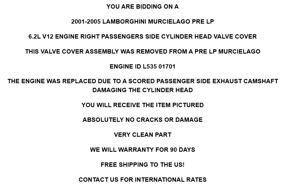 - Manufacturer Part Number: Pre LP 01 02 2002 03 2003 04 2004 05 6.2 6.2L V12 12, Twelve Cyl Cylinder Engine Motor Roadster Coupe, Rocker Box