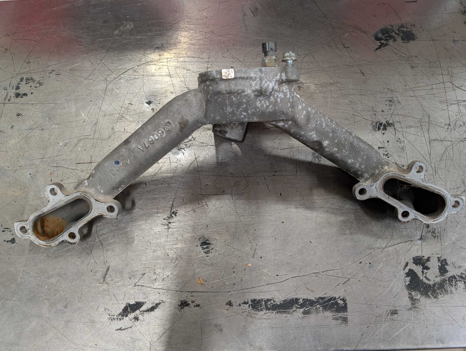 Used lower thermostat housing/coolant crossover for Duramax engines in good condition, was removed from 2006 lbz